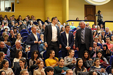К собравшимся в зале со словами приветствия обратился декан факультета физической культуры НИУ «БелГУ» Игорь Никулин, который рассказал о значимых итогах в спорте в уходящем году. По словам Игоря Николаевича, университет имеет высокий спортивный престиж. Выпускник магистратуры факультета физической культуры Педагогического института НИУ «БелГУ» Евгений Тищенко принёс сборной России золото на Олимпиаде, Виталий Дунайцев и Владимир Никитин – бронзовые медали.