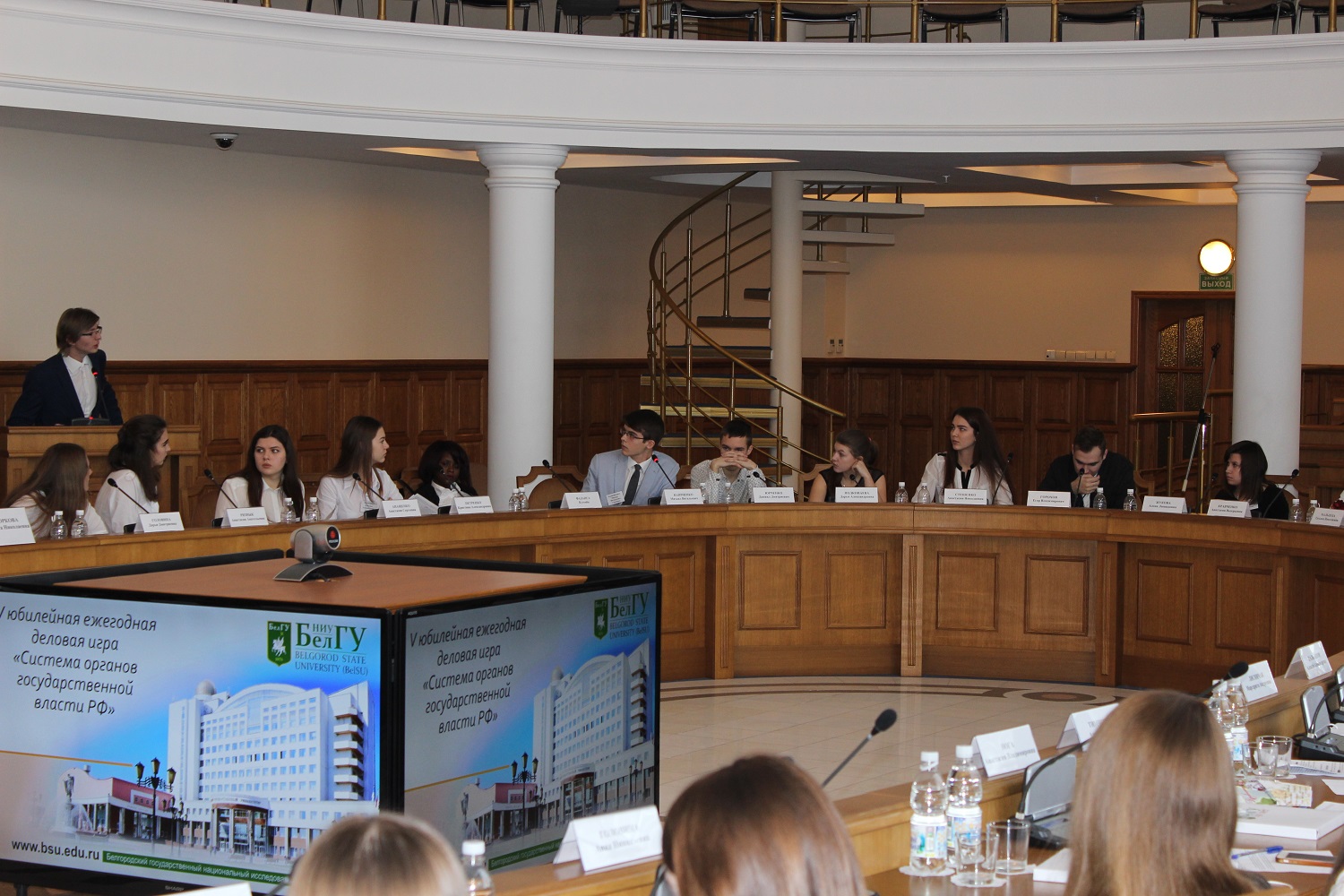 Несколько часов студенты выступали с партийными программами и предвыборными речами, отстаивали свою точку зрения и оппонировали друг другу. Продемонстрировав наглядно всю процедуру формирования системы органов государственной власти в Российской Федерации, студенты ответили на вопросы компетентного жюри во главе с ректором вуза, доктором политических наук, профессором Олегом Полухиным. Оценивал работу студентов также доцент кафедры социологии и социальных технологий, руководитель фракции «Единая Россия» в Совете депутатов города Белгорода Юрий Астахов.
