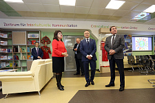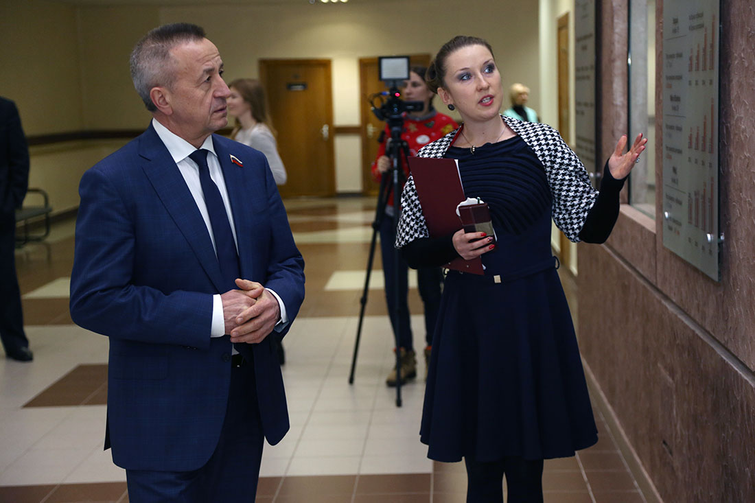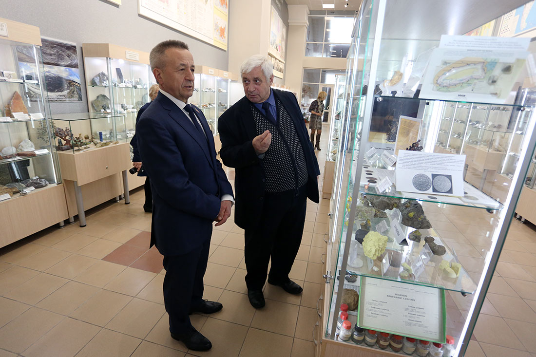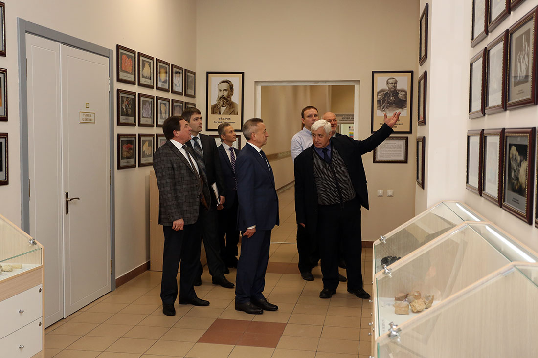 Перед открытием аудитории ректор Олег Полухин провёл для председателя областной думы экскурсию по объектам университета, открывшимся в год 140-летия вуза в здании социально-теологического факультета НИУ "БелГУ" и в корпусах на площадке по ул. Победы. В их числе, выставка научных достижений, Центр межкультурной коммуникации и геолого-минералогический музей НИУ «БелГУ».