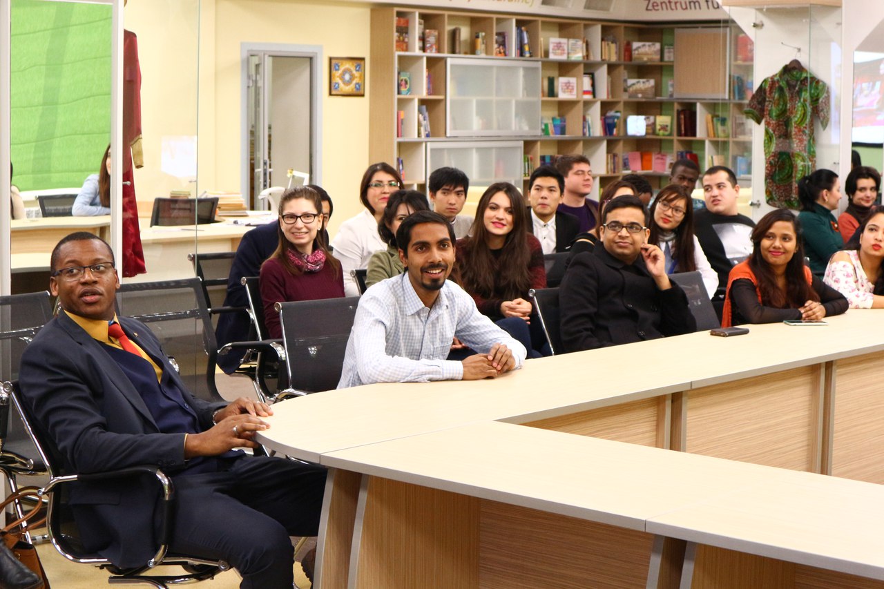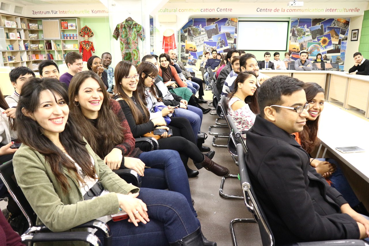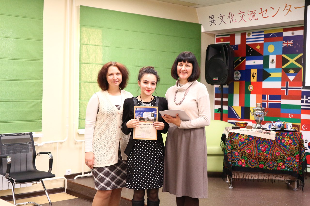 В мероприятии приняли участие студенты, кураторы иностранных землячеств и преподаватели университета. Участники клуба посмотрели презентацию «Народные промыслы России», поучаствовали в беседе и викторине «Этнокультура народов мира», которые подготовили активисты международного студенческого офиса Нина Базарова и Юлия Чайкина.