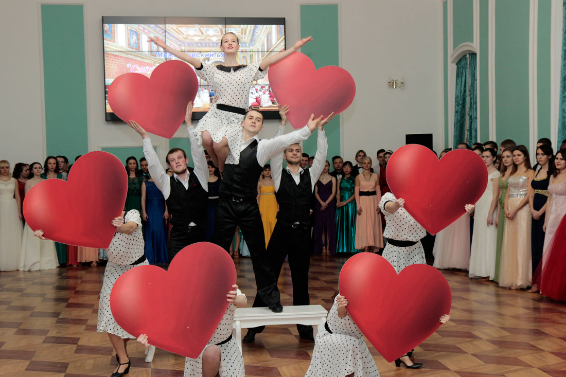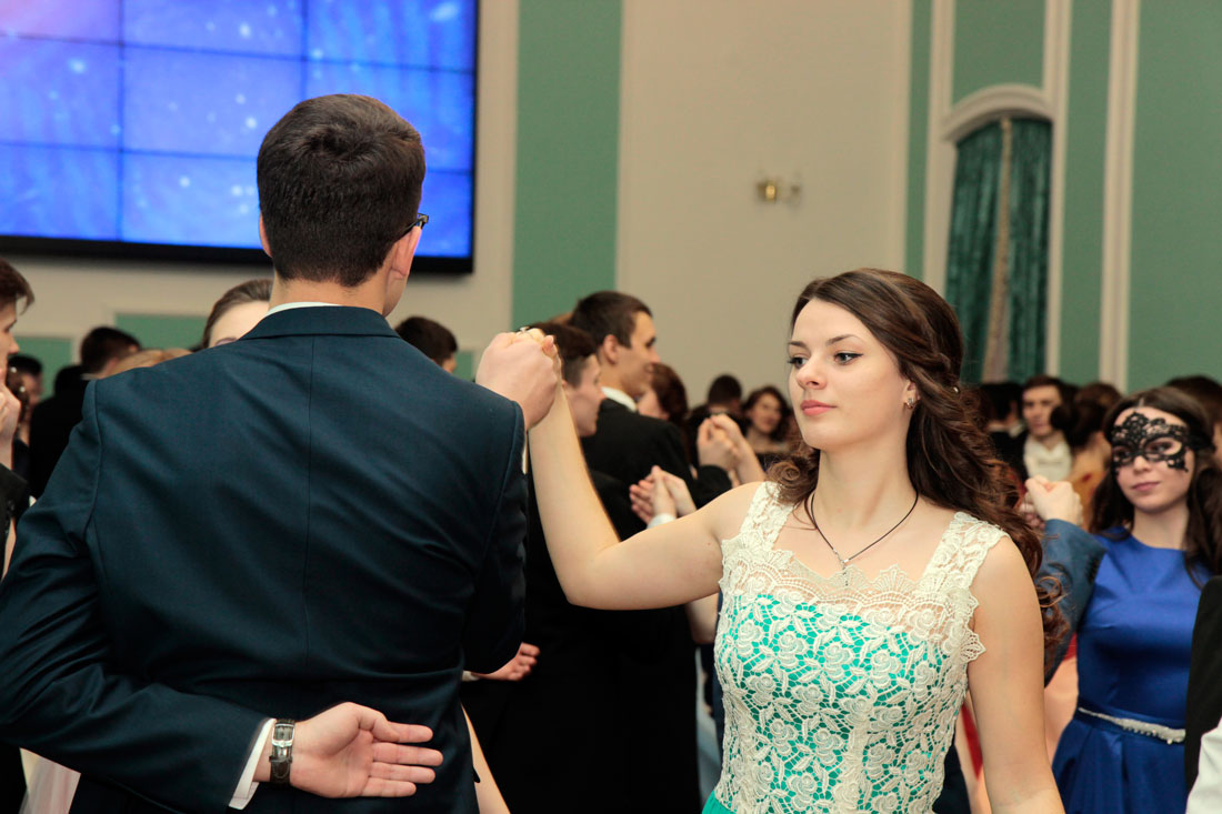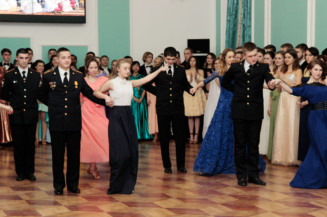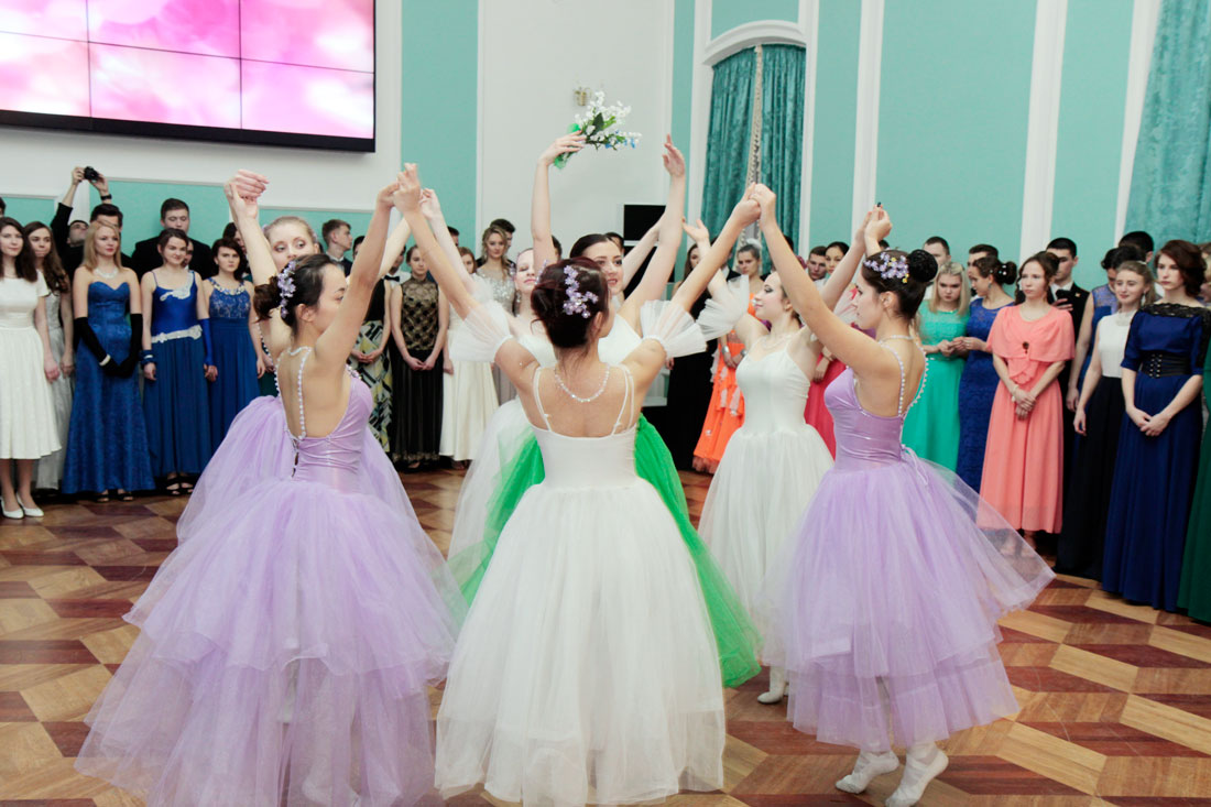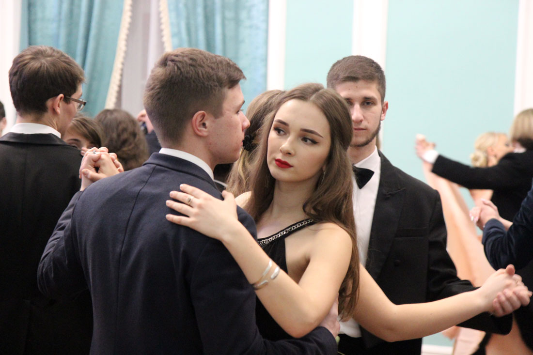 Пары исполнили различные танцы, среди которых полонез, полька знакомств, венский вальс, па-де-грас, вальс-гавот, фигурный вальс, а также поиграли в ручеёк.