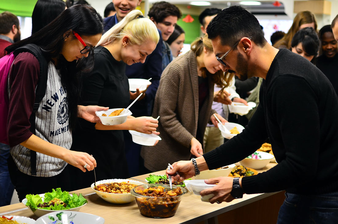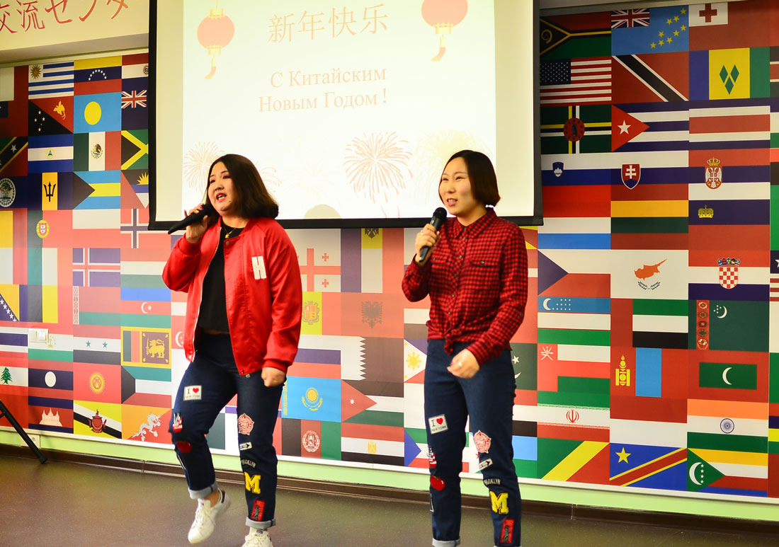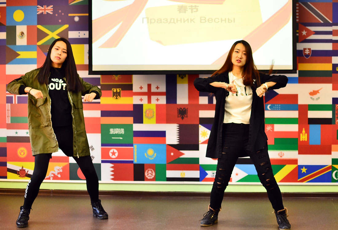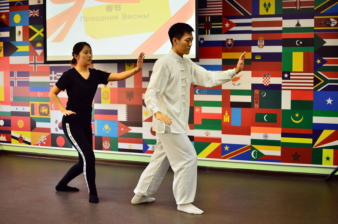 Праздник продолжился яркой концертной программой, в которую вошли танцевальные, песенные и спортивные номера. Студенты из Китая рассказали об истории празднования Нового года по восточному календарю, национальной праздничной символике и традициях своего народа. В завершение вечера китайские студенты угостили сверстников из других стран блюдами национальной кухни.
