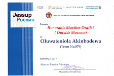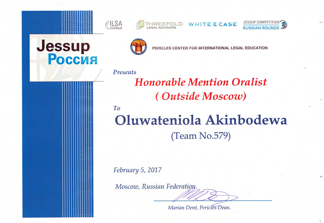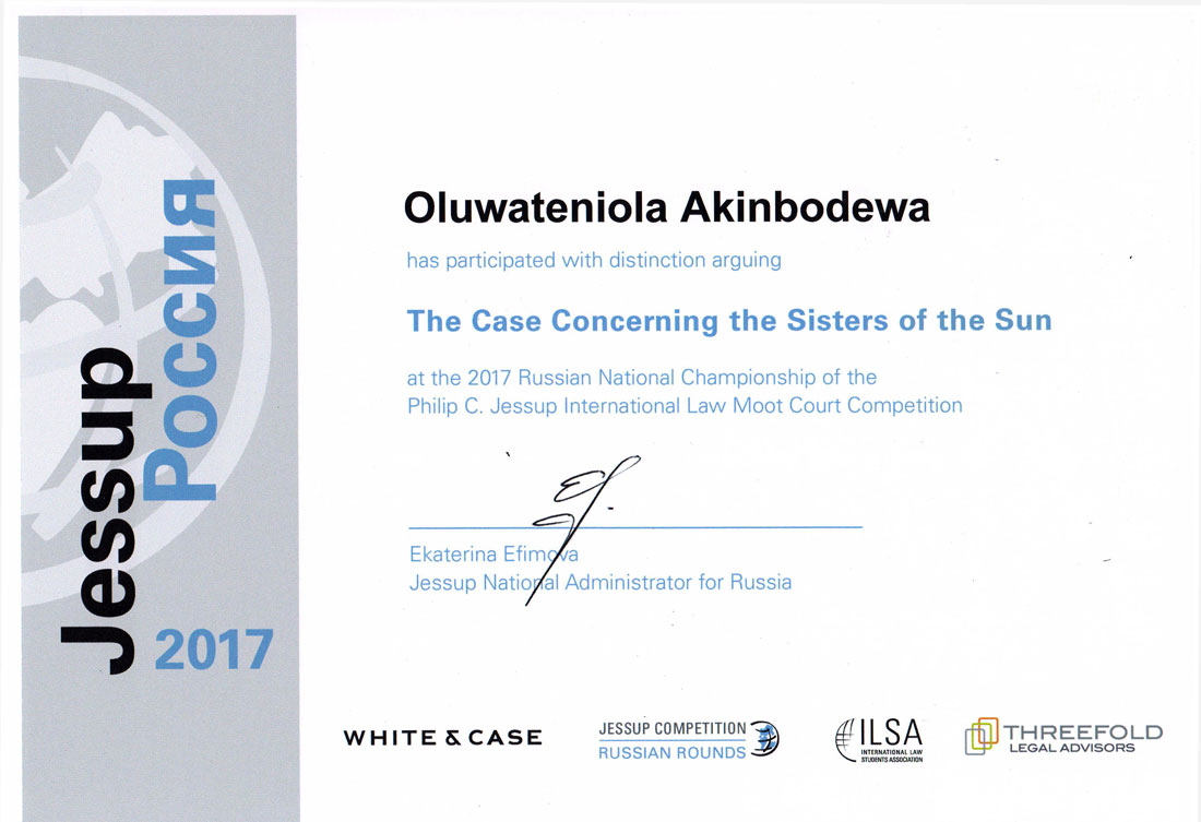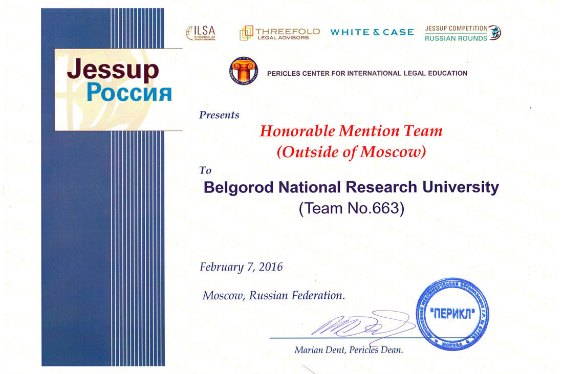 В 2016 году команда Юридического Института НИУ «БелГУ» получила диплом лучшей команды из нестоличного вуза России. В этом году престижной награды удостоилась Акинбодева Олуватениолла, ставшая лучшим игроком сезона из числа игроков команд, не вошедших в число призёров конкурса.