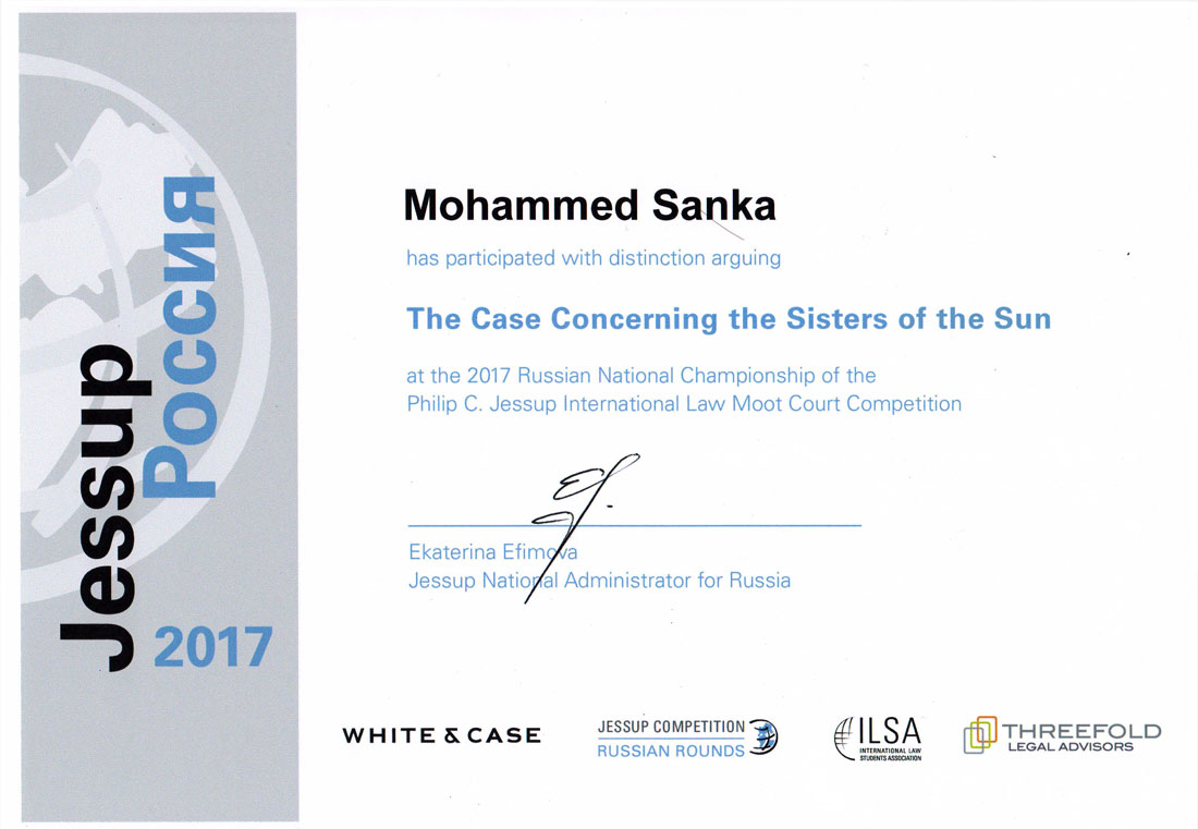 «Мы проделали большой объём работы, - рассказал Санка Моххамед. – Готовились с сентября и удачно представили свой университет. Это неоценимый опыт для будущего практикующего юриста, ведь нужно будет уметь грамотно готовить документы, говорить и убеждать».