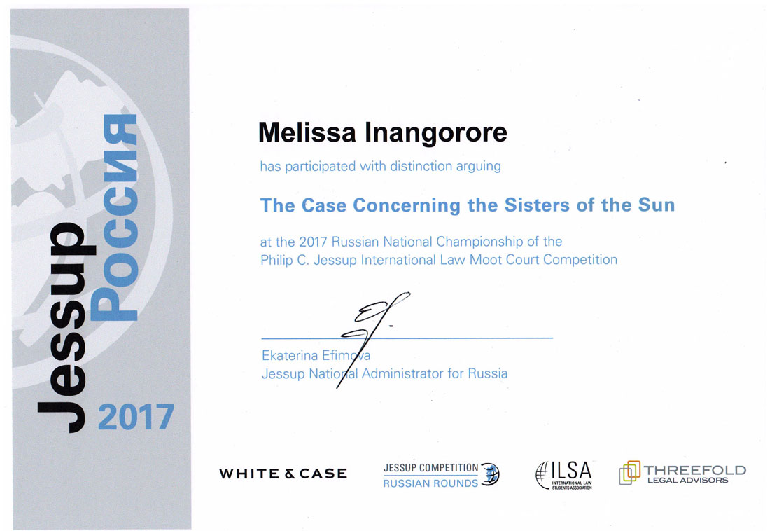 Инициатором номинации был судья из Великобритании Билл Боуринг, профессор права Лондонского университета и известный британский адвокат, практикующий в основном в Европейском суде по правам человека, основатель и первый директор Human Rights & Social Justice Research Institute (Научно-исследовательский институт прав человека и социальной справедливости). Идею английского профессора поддержала судейская коллегия. Билл Боуринг отметил отличную подготовку и высокий профессионализм белгородских студентов. Подчеркнём, что в самом крупном и престижном судебном соревновании по международному праву в мире, участвуют около 3000 студентов из более чем 700 юридических высших учебных заведений 90 стран мира.