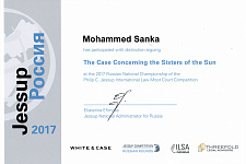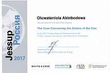 Конкурс Филиппа Джессопа – это соревнование по международному праву, которое проводится в форме игрового судебного процесса - имитации рассмотрения дела Международным судом ООН. Студенты в реальном времени представляют интересы государства-истца либо государства-ответчика. Судьями в модельных процессах выступают представители мировых юридических компаний, зарубежные преподаватели, профессиональные судьи международных судов. Все этапы конкурса (письменный и устный) проходят на английском языке. Отметим, что темой конкурса в 2017 году были права человека