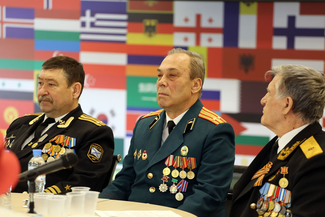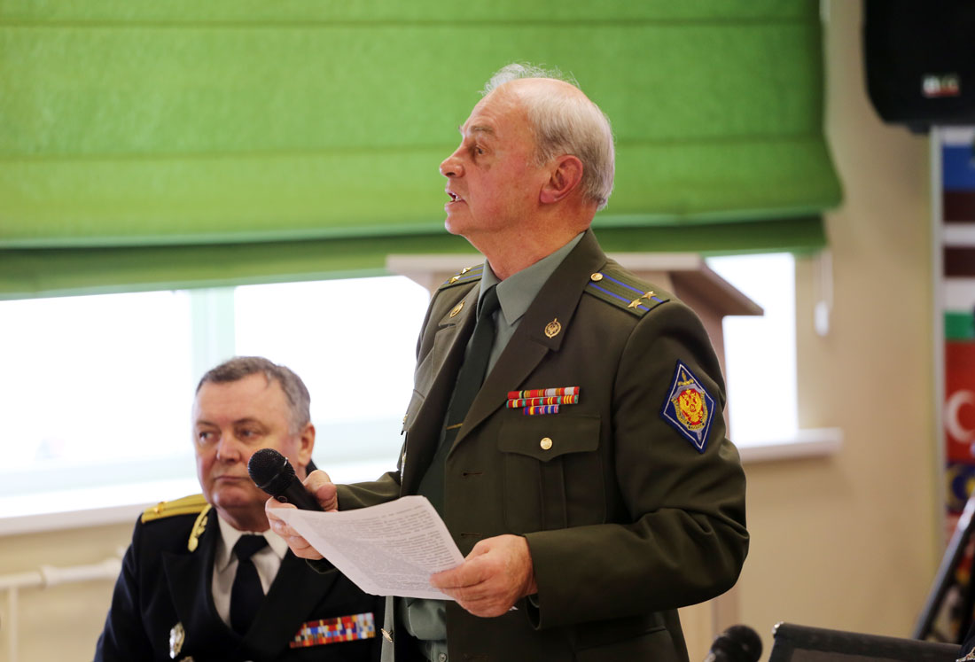 Почётный профессор НИУ «БелГУ», ветеран Великой Отечественной войны Пётр Григорьевич Коняев рассказал о тяжёлых годах военного лихолетья. О своей службе на военно-морском флоте СССР рассказал контр-адмирал в отставке Борис Фёдорович Дурышев. Ветеран-подводник говорил об испытании ракет, за которые был награждён орденом Боевого Красного Знамени, о далёких походах и многом другом из будней моряков. В свою очередь подполковник в отставке Валерий Александрович Бунин затронул тему вооружённого конфликта в Приднестровье. Студенты, кадеты, преподаватели и ветераны читали стихи на военно-патриотическую тематику.