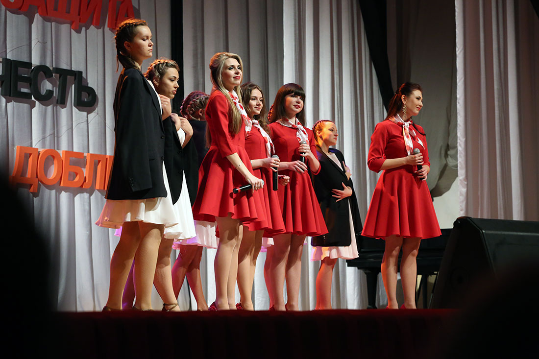 После торжественного поздравления и вручения золотых значков на сцене выступили участники творческих коллективов НИУ «БелГУ». Композиции были посвящены Родине, военному долгу, доблести, чести и мужеству. Свои творческие номера подарили зрителям группа «31 регион», Арт-студия и школа-студия «Вереск», солисты Иветта Григорьева, Эдгар Федикович и ансамбль «Вдохновение», ансамбль спортивного бального танца «Белогорочка», шоу-группа «Эксклюзив»