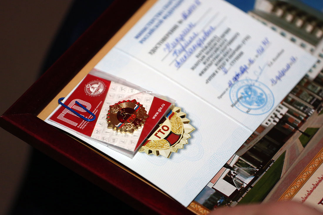 В продолжении праздничной церемонии ректор вручил золотые значки ГТО 18 самым достойным, ловким и сильным студентам, которые смогли взять самую высокую планку Всероссийского комплекса ГТО.