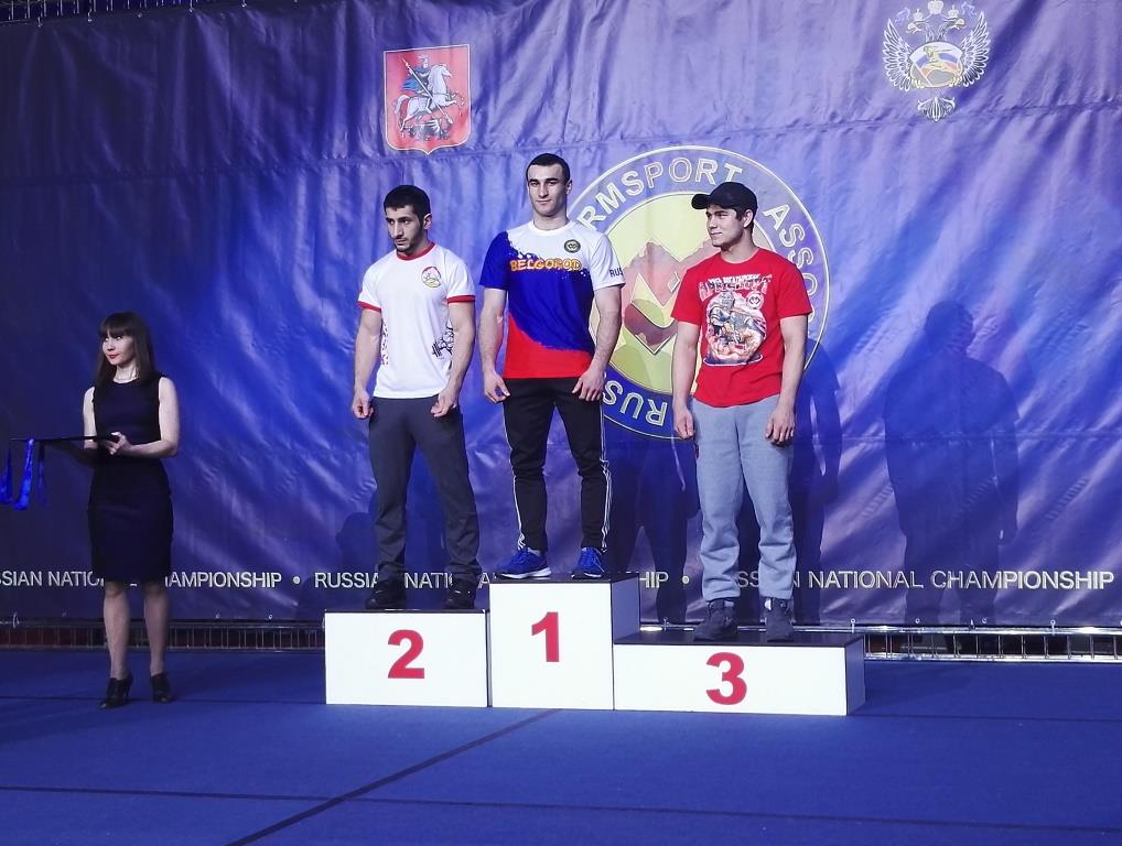 Лидер юниорской сборной, один из сильнейших спортсменов Белгородской области Рустам Абди Оглы одержал уверенную победу в борьбе правой рукой, но в сумме стал серебряным призером, травма левой руки не позволила стать победителем.