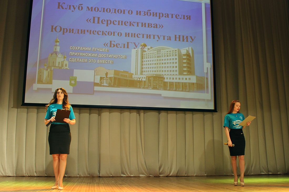 Ведущие рассказали зрителям, что в сентябре 2016 года на выборах депутатов в Государственную Думу РФ VII созыва молодежь вуза, как и всей области, приняла самое активное участие в реализации своих избирательных прав. А также напомнили, что 10 сентября 2017 года в Белгородской области будет проходить событие, имеющее огромное значение для всех жителей Белгородчины – выборы Губернатора Белгородской области.
