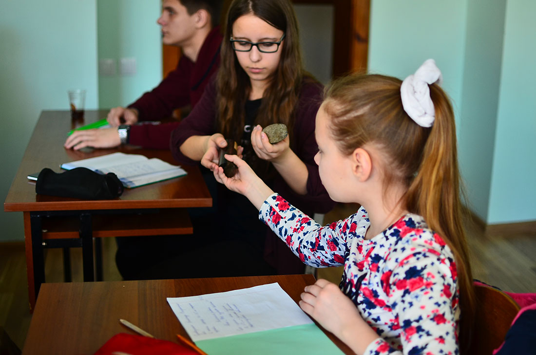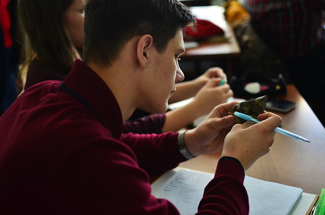 На первом занятии «Что изучает геология?» младший научный сотрудник геолого-минералогического музея НИУ «БелГУ» Александр Овчинников рассказал ребятам о связи геологии с другими науками и о объектах геологического изучения: строение Земли и земной коры, минералы, горные породы, окаменелости, подземные воды, нефть и газ, возраст горных пород, формы их залегания, геологические процессы, полезные ископаемые.