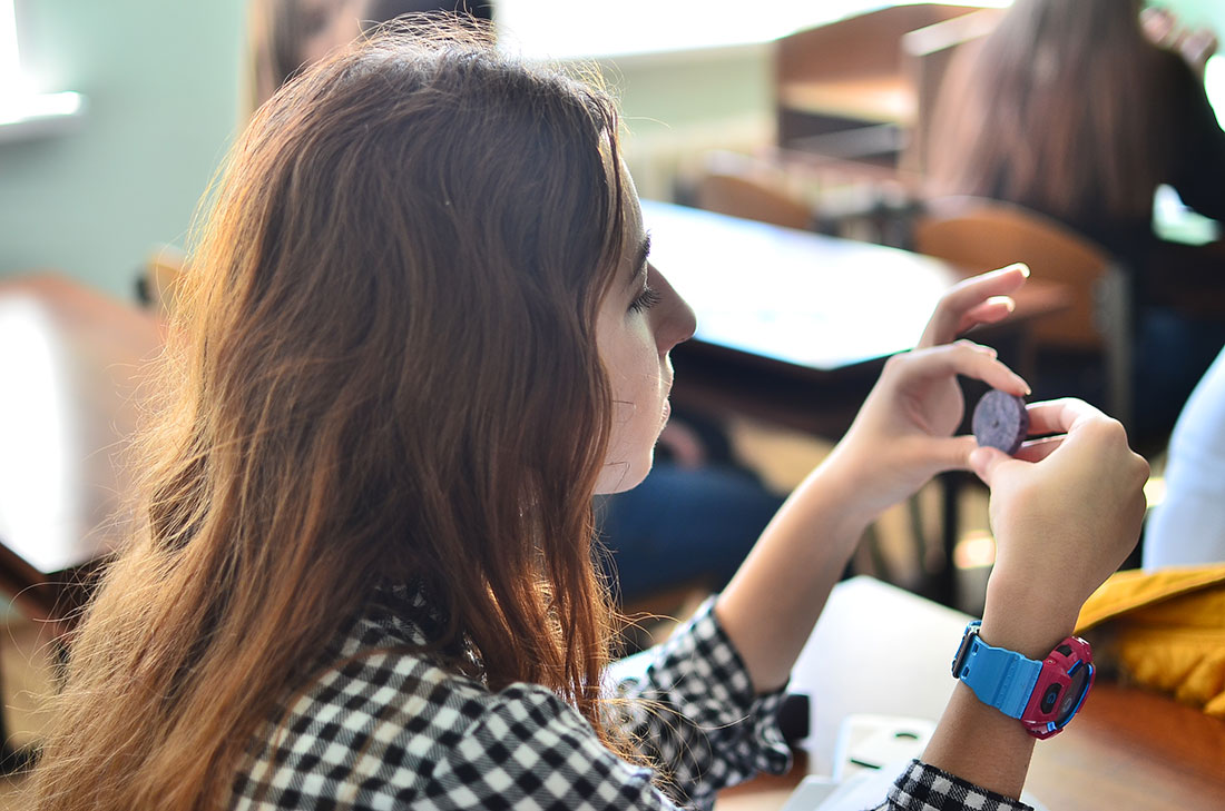 Большой интерес у ребят вызвала коллекция образцов минералов, горных пород и окаменелостей, которую можно было рассмотреть в непосредственной близости. Школьники познакомились как с самыми распространенными минералами (полевой шпат, кварц, кальцит), так и с драгоценными, полудрагоценными и поделочными (золото, топаз, азурит, малахит, чароит и другие). Увидели белемнитов разного возраста, аммонитов, морских ежей, а также наиболее распространенные горные породы магматического, осадочного и метаморфического происхождения.