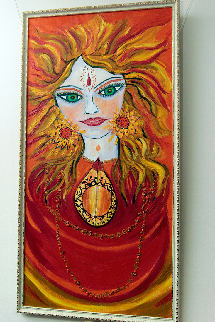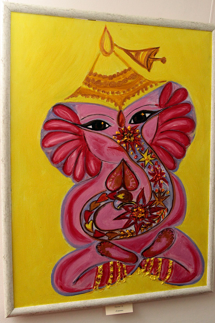 На выставке представлены акварельный портрет автора картин и 10 тематических работ, написанных маслом. Одна из картин этой выставки посвящена богу Шиве. В своеобразной живописной технике представлены другие божества (Хануман, Ганеша).