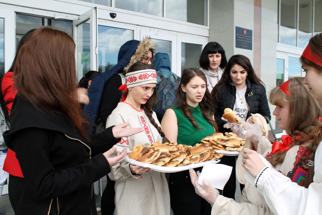Студентки факультета дошкольного, начального и специального образования Педагогического института Александра Чарикова, Виктория Панфилова, Арина Маслова и Мария Охрименко продемонстрировали то, как крестьяне пробуждали землю, готовя её к севу зерновых. Студенты-иностранцы поделились национальными традициями встречи весны. Затем участники мероприятия под руководством доцента кафедры теории, педагогики и методики начального образования Педагогического института Елены Иващенко сделали народную куклу «Веснянку».
