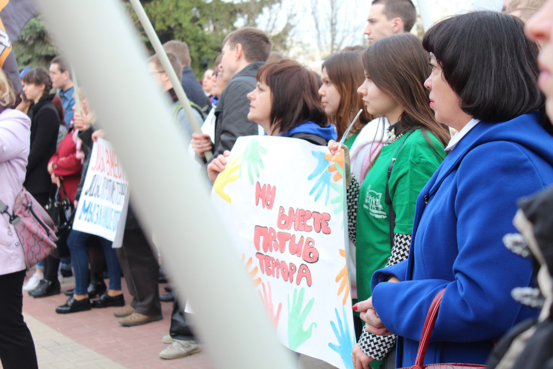 Памятный митинг прошёл в парке Победы в областном центре и собрал не только студентов, но и многих представителей общественных организаций и простых белгородцев, неравнодушных к проблеме угрозы терроризма во всём мире.