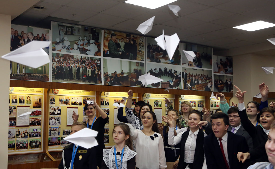 Символом акции «Письмо солдату» стал бумажный самолётик, который запустили все участники встречи.