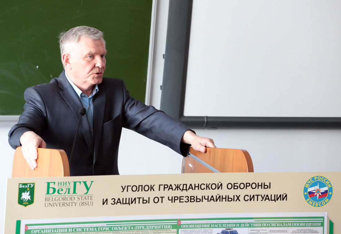 - В соответствии с планом основных мероприятий в области ГО и защиты от ЧС на 2017 год, а также в рамках 85–летия со дня образования гражданской обороны России в НИУ «БелГУ» был проведён учебно - методического сбор по теме: «Совершенствование организации и выполнения мероприятий в области ГО и предупреждения ЧС в НИУ «БелГУ» в мирное и военное время», - рассказал Михаил Михайлович. – Участникам сборов были доведены требования руководящих документов и функциональные обязанности нештатного специалиста, уполномоченного на решение задач в области ГО и защиты от ЧС, а также проведено инструктивно-методическое занятие по организации и выполнению мероприятий в структурном подразделении при переводе гражданской обороны с мирного на военное время.