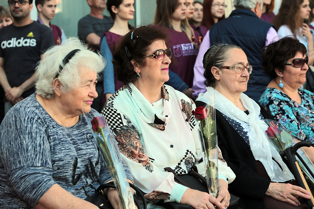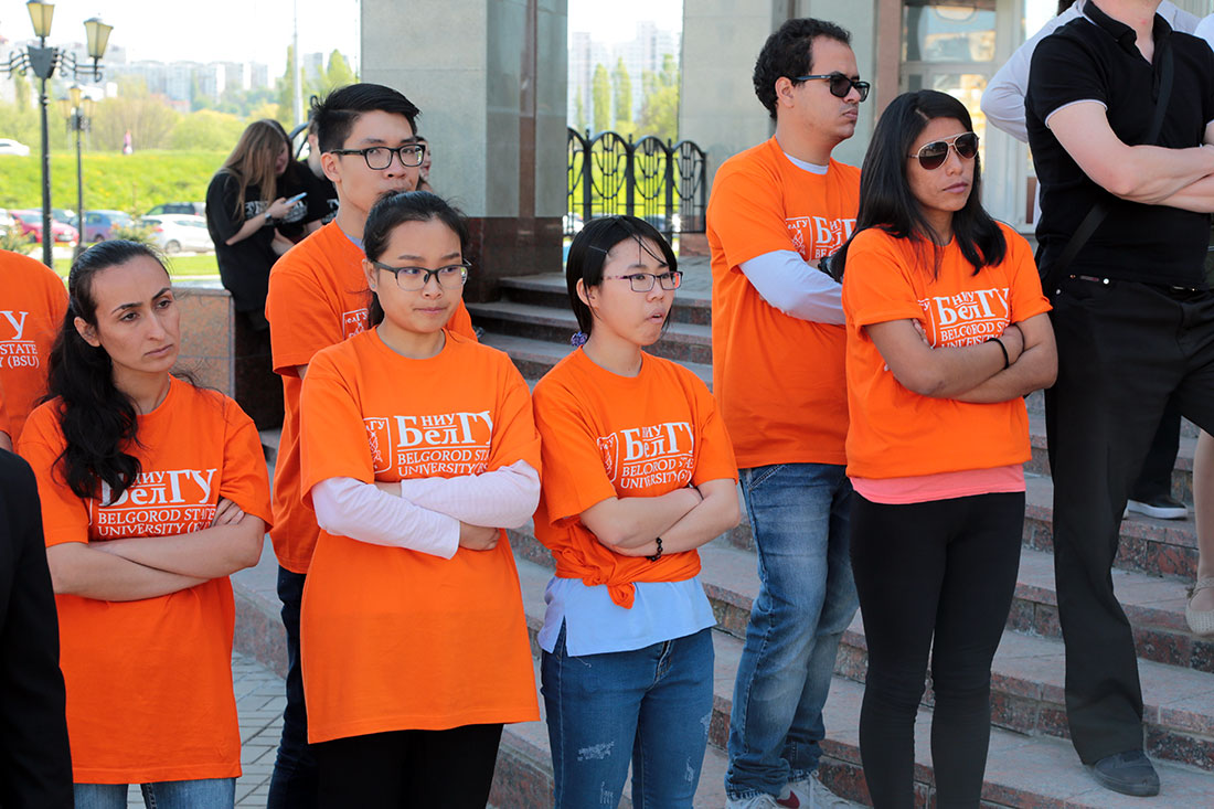 На университетской площади собрались ветераны, труженики тыла, дети войны, студенты, сотрудники и представители ректората Белгородского госуниверситета.