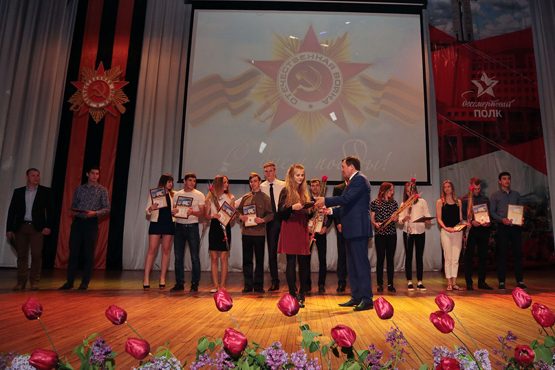 - Для нашего народа День Победы – это великий праздник, над которым годы не властны, - приветствовал ветеранов Олег Полухин. – Победа определила дальнейшую историю не только России, но и всего мира. Наш народ заплатил величайшую цену. Мы помним и чтим подвиг воинов и тех, кто трудился в тылу. В этом зале собрались люди, благодаря которым наш университет прошёл этапы своего становления, благодаря которым мы сохранили историю вуза и продолжаем писать её новые страницы. Мы искренне уважаем и любим вас, дорогие ветераны. Университет всегда будет оказывать вам всю возможную помощь.