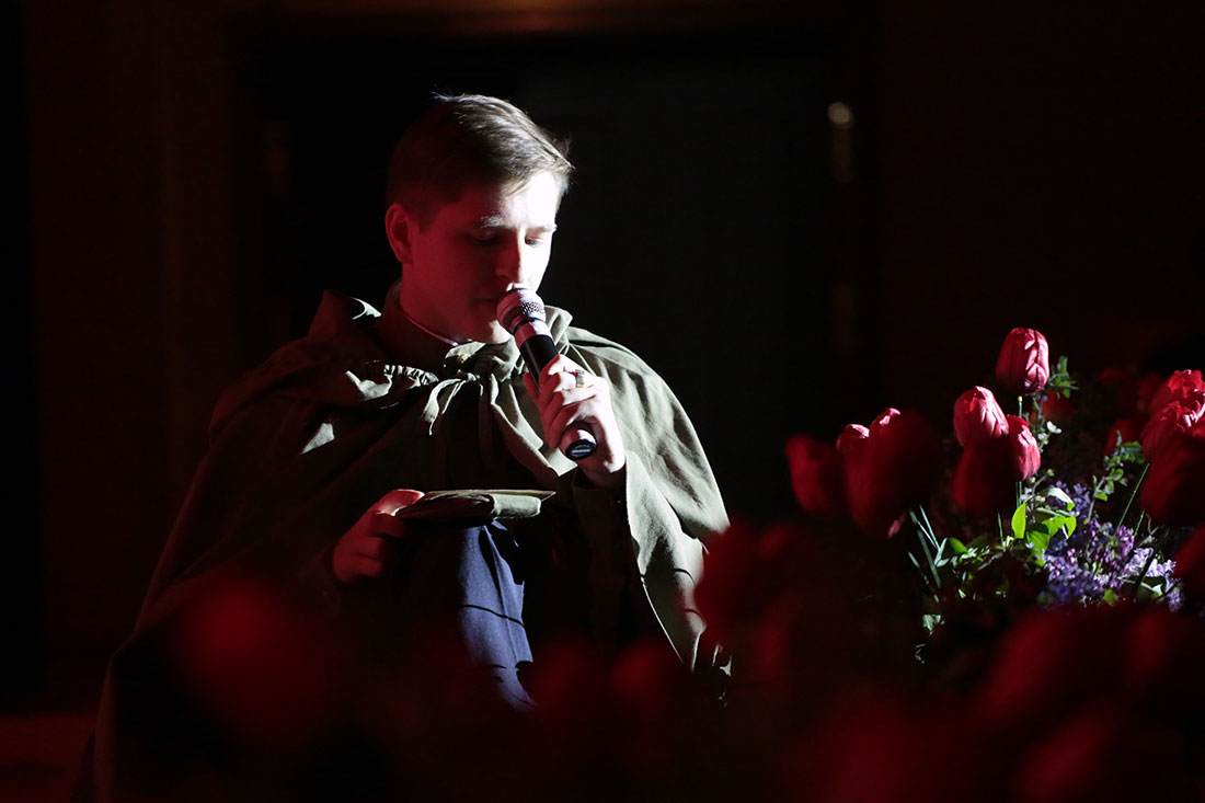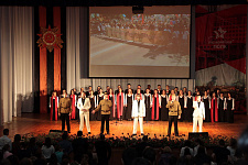 Присутствующие на концерте в зале особо тепло приветствовали ветерана Великой Отечественной войны, советника при ректорате, почётного профессора НИУ «БелГУ» Петра Григорьевича Коняева.
