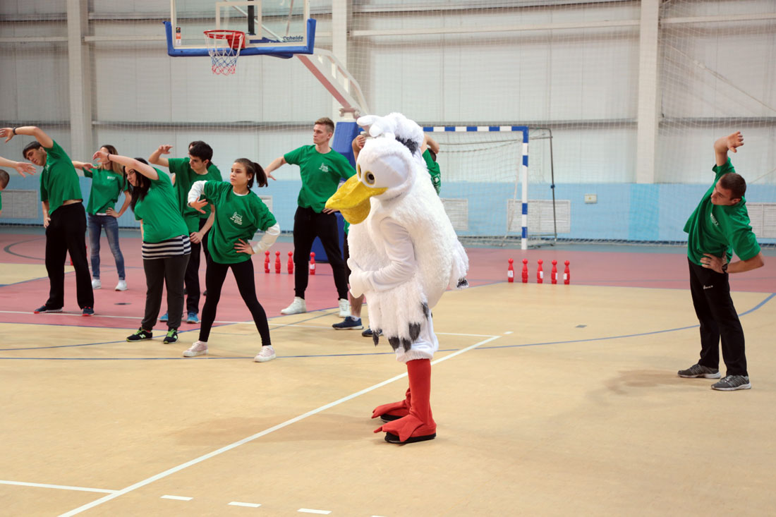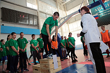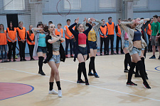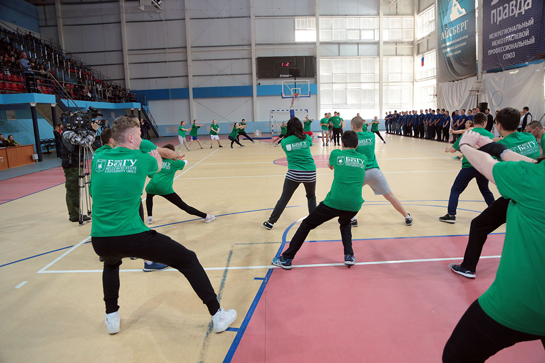 Перед выполнением комплекса испытаний, как и полагается, была проведена зарядка-разминка с победительницей Всероссийского форума ГТО, чемпионкой Ассоциации спортивных студенческих клубов России, студенткой факультета физической культуры Педагогического института Марией Токарь. После разминки 18 команд-участниц состязаний по 2 человека в каждой отправились на соревновательные дистанции.