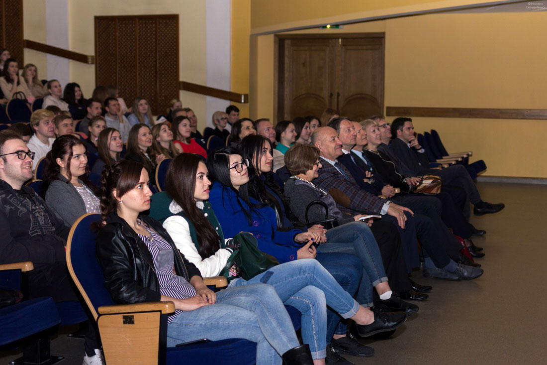Не обошёлся вечер и без традиционных музыкальных пауз. Ведущий побеседовал с музыкантами: заместителем декана по воспитательной работе Дмитрием Срыбным и солисткой арт-студии «Вереск» Валерией Паниной. И.о. декана факультета Светлана Ушакова наградила 70 студентов за достойные результаты в учёбе, науке и творчестве. После награждения ведущие предложили преподавателям сыграть в игру «Устами родителей».