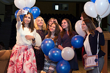 Завершился праздничный вечер выходом на сцену всех студентов-выпускников, которые, соблюдая традиции, торжественно вручили третьекурсникам символы факультета журналистики Белгородского госуниверситета.