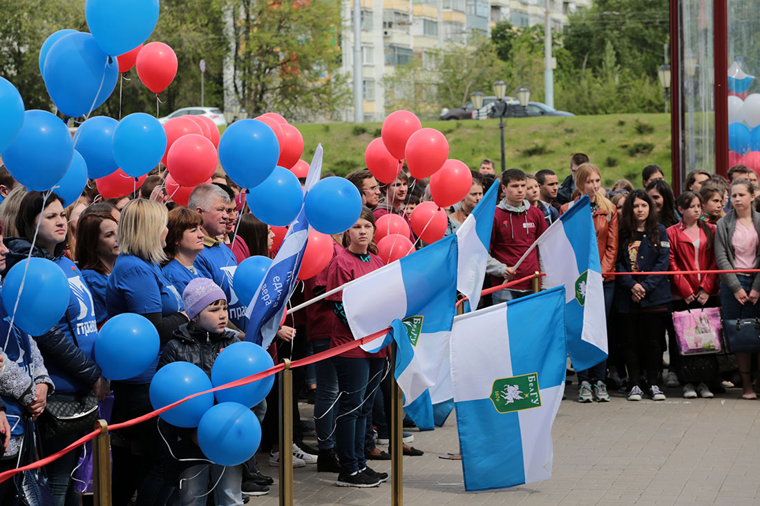 В митинге приняли участие Герои России: полковник Алексей Романов, ветеран боевых действий в Афганистане, паралимпиец Танаткан Букин, ветеран контртеррористической операции на Северном Кавказе Егор Навроцкий, участник операций по поддержанию правопорядка на территории Северного Кавказа, белгородец Вячеслав Воробъев, ректор НИУ «БелГУ», профессор Олег Полухин, заместитель губернатора Белгородской области Ольга Павлова, руководитель направления маркетинговых коммуникаций Благотворительного фонда «Память поколений» Наталья Шарапова, председатель Межрегионального межотраслевого профессионального союза «Правда» Сергей Фуглаев, официальные лица города и области.