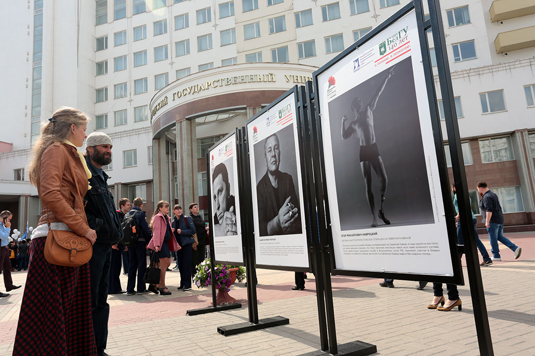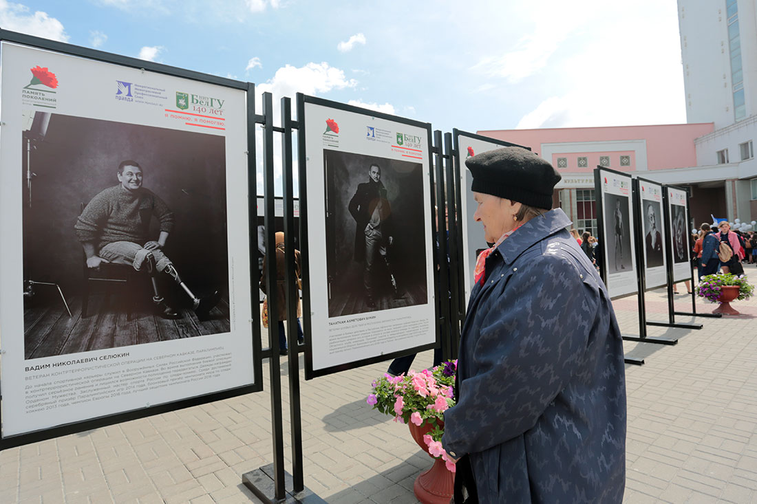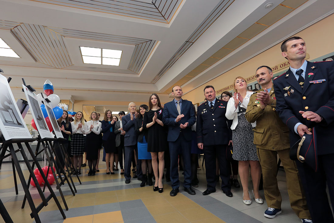 После митинга в молодежном культурном центре вуза состоялось торжественное открытие экспозиции. Приехавшие в Белгород герои фотовыставки рассказали о своем решении принять участие в таком ярком проекте.