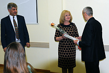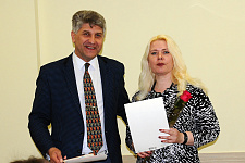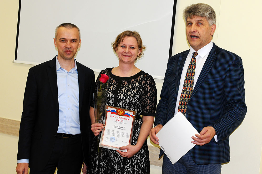 Председатель профкома НИУ «БелГУ» Валерий Тимофеев, поздравляя собравшихся, вручил благодарственные письма работникам управления по развитию персонала и кадровой работе за добросовестный труд, тесное взаимодействие с первичной профсоюзной организацией по развитию социального партнёрства.