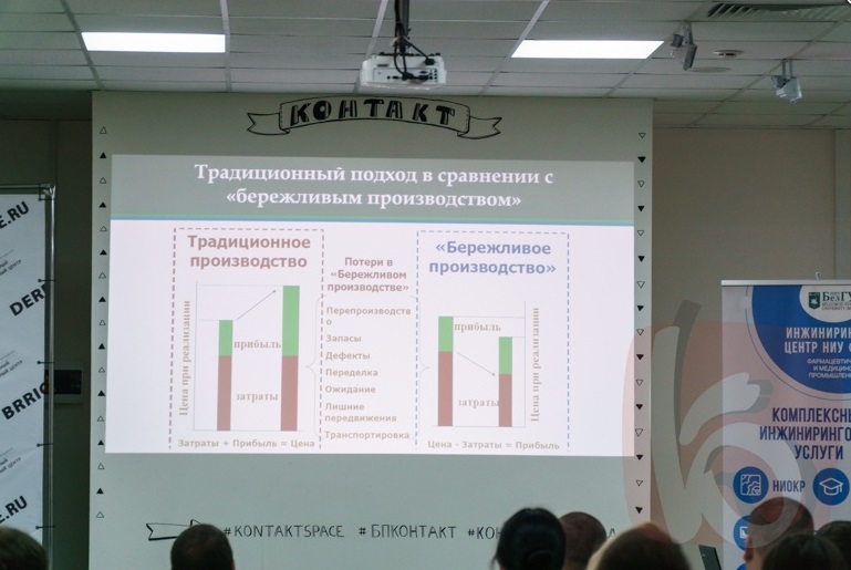 Участникам представили пять основных принципов «Лин» и показали, что главная проблема – преобразования в умах и чувствах людей. Порой компании платят деньги консалтинговым фирмам за выстраивание системы, но после их ухода весь процесс возвращается на круги своя в силу старой привычки. Научный сотрудник Инжинирингового центра НИУ «БелГУ» Дмитрий Попов рассмотрел практически процесс выстраивания дорожной карты внедрения Lean-технологий в производственную систему предприятия. Он сделал акцент на том, что важнейшую роль играют сотрудники, понимающие миссию предприятия. Работников, сотрудников нужно стимулировать на порядок на рабочем месте, поощрять за полезные рекомендации в работе, своевременно выявлять сбои в системе и исправлять их. В конечном итоге предприятие получает рост производительности, сокращение сроков реализации проектов. О том, как сэкономить на освещении, работе котельной, на автоматизации и других вещах, рассказали представители белгородских компаний. О научных разработках в сфере «бережливого производства» доложили сотрудники Инжинирингового центра НИУ «БелГУ».