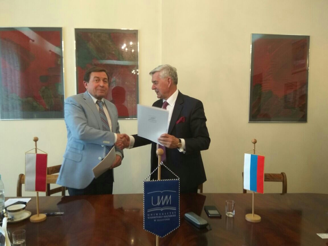 Тема развития сотрудничества была основной и на встрече с ректором Варминьско-Мазурского университета Рышардом Гурецки, который высоко оценил существующие партнёрские отношения и перспективы их расширения. Ректоры подписали новую программу сотрудничества, предусматривающую активизацию академической мобильности, совместную исследовательскую деятельность. После обсуждения имеющихся возможностей для расширения контактов, белгородцы ознакомились с инфраструктурой университета, а также пообщались со студентами Юридического института НИУ «БелГУ», которые проходят включённое обучение на факультете права и управления Варминьско- Мазурского университета в рамках академической мобильности.