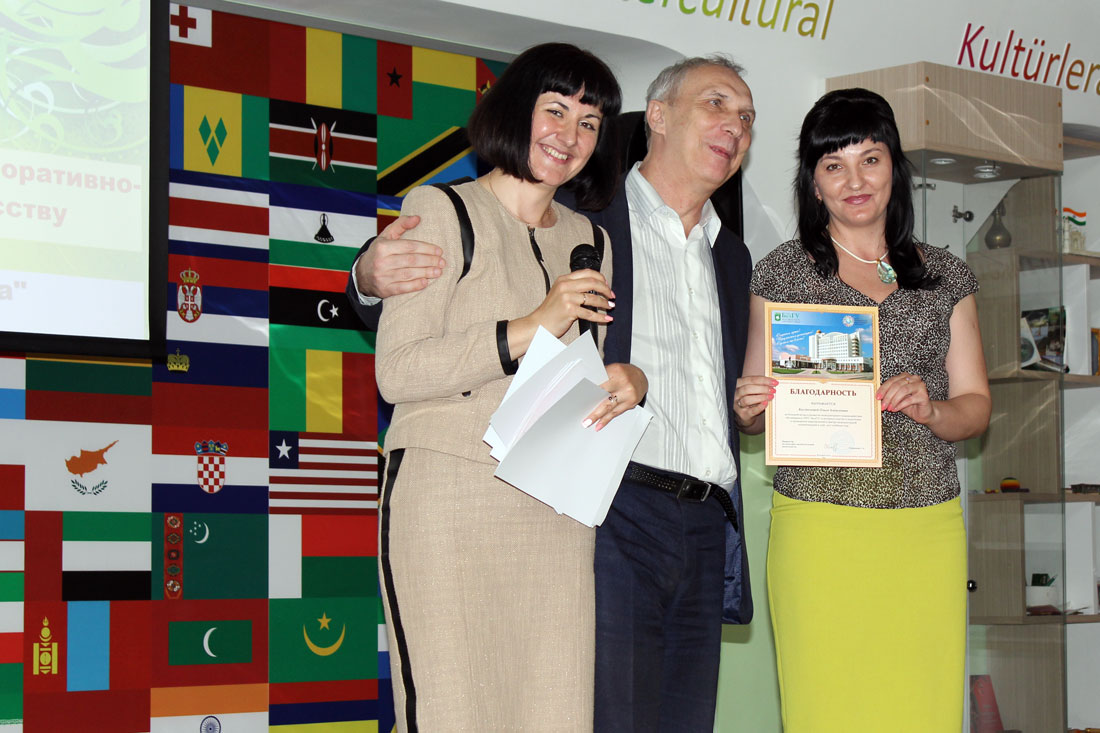 В завершение вечера заместитель проректора по международной деятельности Белгородского госуниверситета Михаил Трубицын и директор Центра межкультурной коммуникации Елена Назаренко вручили благодарности за вклад в развитие межкультурного взаимодействия студентов НИУ «БелГУ» самым активным участникам мероприятий Центра межкультурной коммуникации 2016-2017 учебного года.