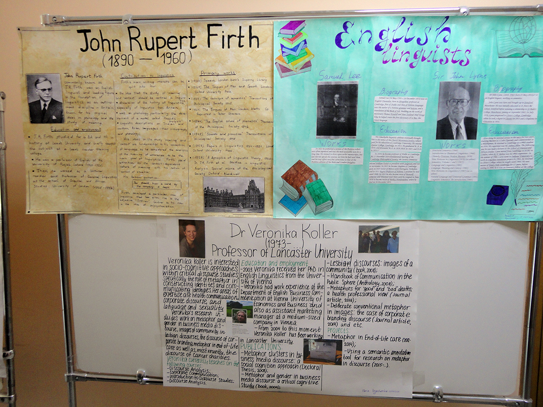 В рамках сессии студентами английского отделения были подготовлены постеры с информацией о наиболее известных лингвистах Великобритании.