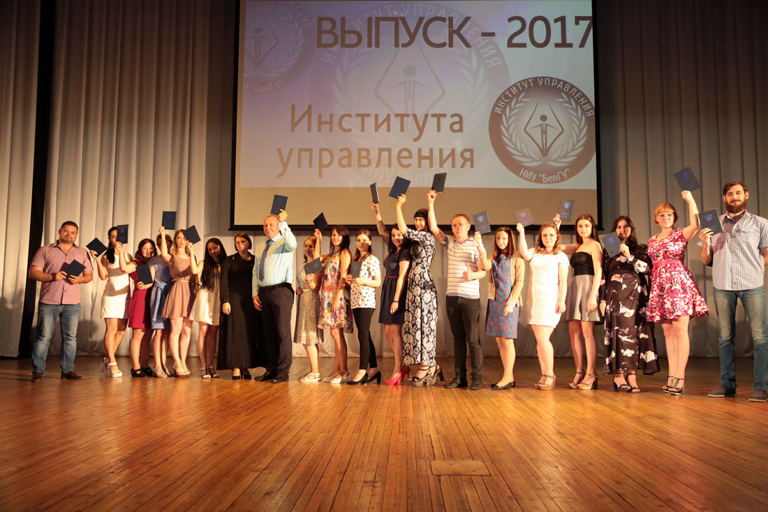Виктор Захаров в своих напутственных словах пожелал выпускникам удачи, а также поблагодарил их и сотрудников Института управления НИУ «БелГУ» за отличную работу. На протяжении всей церемонии преподаватели говорили выпускникам слова напутствия, желали успехов в карьере. В завершение вручения дипломированные специалисты, которые ещё вчера были студентами, поблагодарили преподавателей и университет, давший им путёвку в новую жизнь. Подарками для выпускников и их родителей стали яркие и зажигательные выступления от студии современного танца «Данс Хаос» и вокалисток шоу-группы «Эксклюзив».