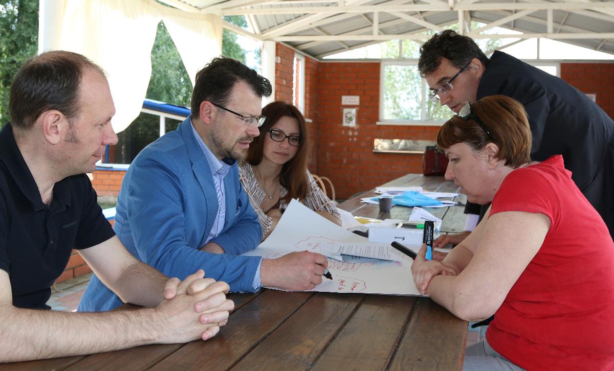 Во второй половине дня работа стратегической сессии была продолжена на базе оздоровительного комплекса «Нежеголь» в формате совещаний-дискуссий малых групп по четырем направлениям: «Образовательная деятельность» (руководитель – А.В. Маматов), «Научная и инновационная деятельность» (руководитель – И.С. Константинов), «Международная деятельность» (руководитель – В.А. Кучмистый) и «Третья миссия университета (инфраструктурное и социальное развитие в интересах общества)» (руководитель – А.А. Изварин). Каждая из малых групп разработала конкретизированные предложения по перечню индикаторов и мерам усиления конкурентных преимуществ НИУ «БелГУ» в рамках рассматриваемых направлений. Обобщенным итогом работы летней стратегической сессии стал проект Приложения к Программе повышения конкурентоспособности НИУ «БелГУ» среди ведущих мировых научно-образовательных центров на 2013-2017 гг. и на перспективу до 2020 года.