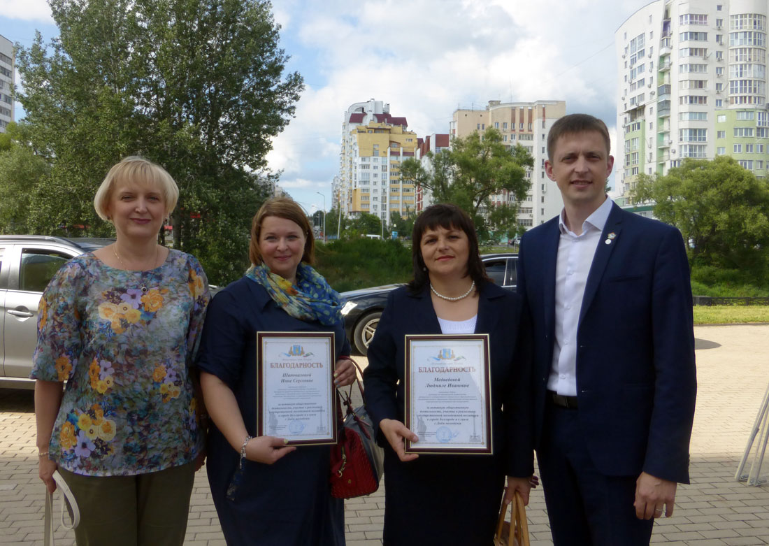 С праздником молодых людей поздравили заместитель начальника департамента внутренней и кадровой политики области – начальник управления молодежной политики Белгородской области Андрей Чесноков и заместитель главы администрации города по внутренней и кадровой политике Ольга Медведева. Ольга Ильинична вручила представителям НИУ «БелГУ» благодарности администрации Белгорода за активную общественную деятельность, участие в реализации государственной молодёжной политики в городе Белгороде. Благодарности получили начальник отдела культурно-воспитательной деятельности НИУ «БелГУ» Людмила Медведева, заведующая кафедрой социологии и организации работы с молодёжью Института управления Инна Шаповалова, помощник юрисконсульта научно-исследовательской лаборатории правовых исследований Юридического института Игорь Попов и студентка Юридического института Ирина Мерзликина.