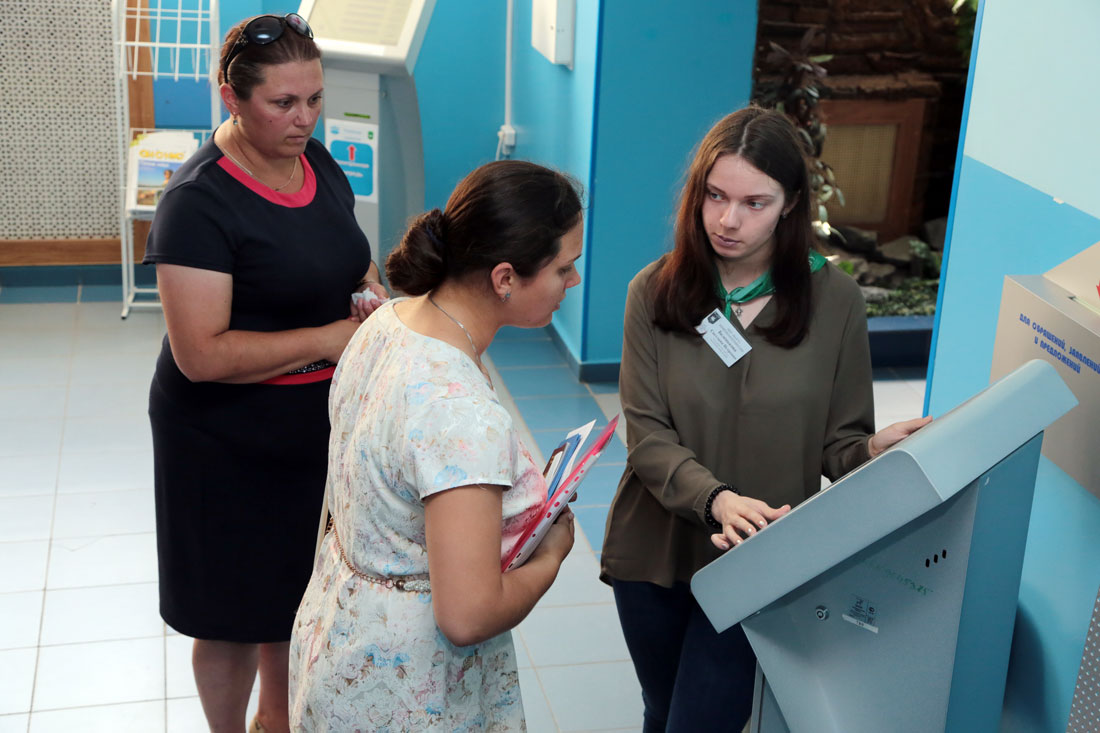- Но три четверти всех желающих поступить в университет документы принесли лично, – сообщил Александр Гальцев. – Для них с 2013 года работает система «электронной очереди», позволяющая избежать лишней суеты и неразберихи. Теперь, чтобы попасть в приёмную комиссию, необходимо подойти к терминалам, взять талон с номером очереди и возможным временем ожидания. Приём документов ведут тридцать операторов.