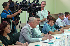 В тепличном комплексе, который завершает полный цикл получения посадочного материала, гостям рассказали о возможностях автоматизированной системы, которая контролирует полив, поддержание температуры, влажности. После осмотра тепличного комплекса губернатор области Евгений Савченко принял участие в заседании круглого стола по вопросам деятельности научно-образовательного центра «Ботанический сад «НИУ «БелГУ».