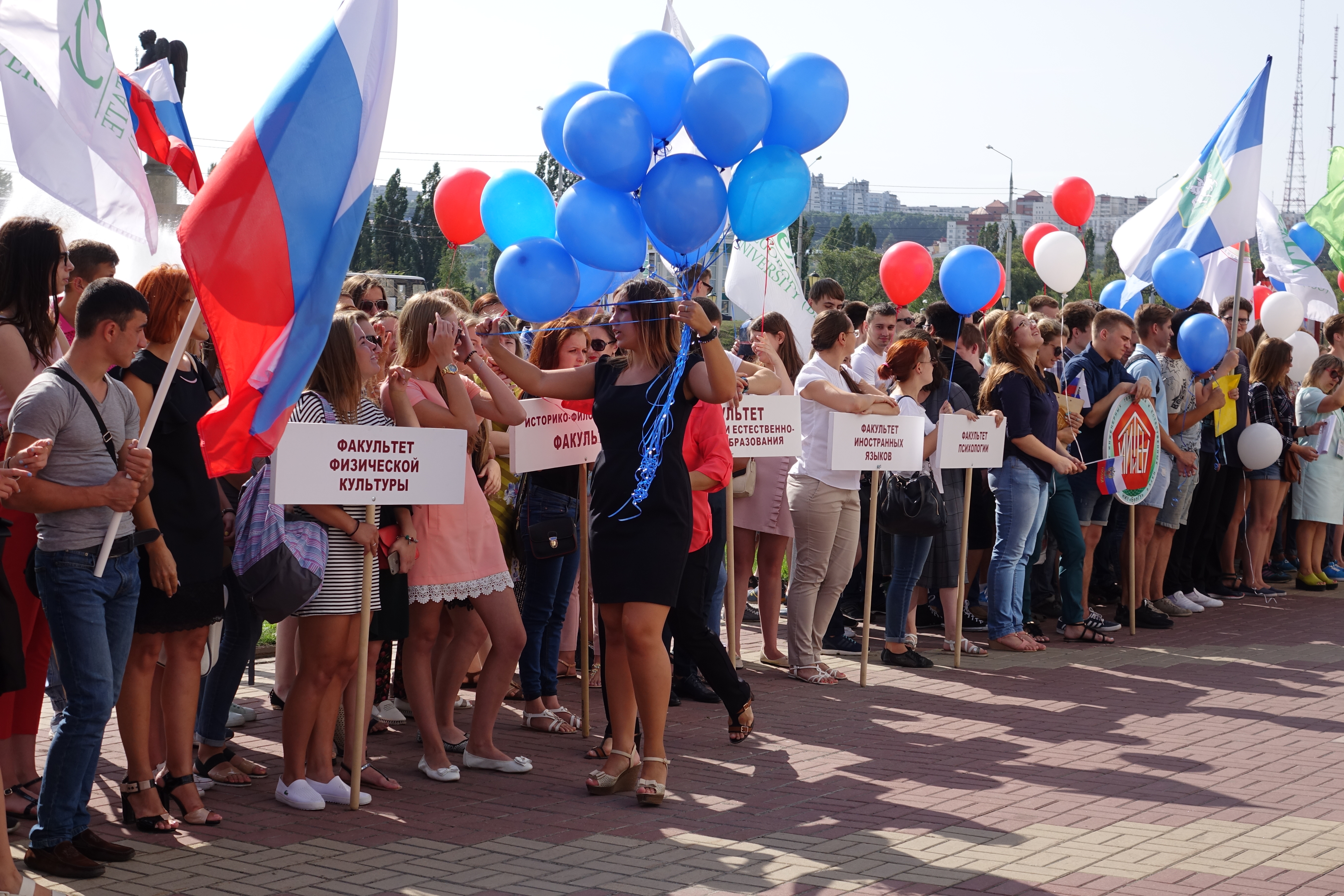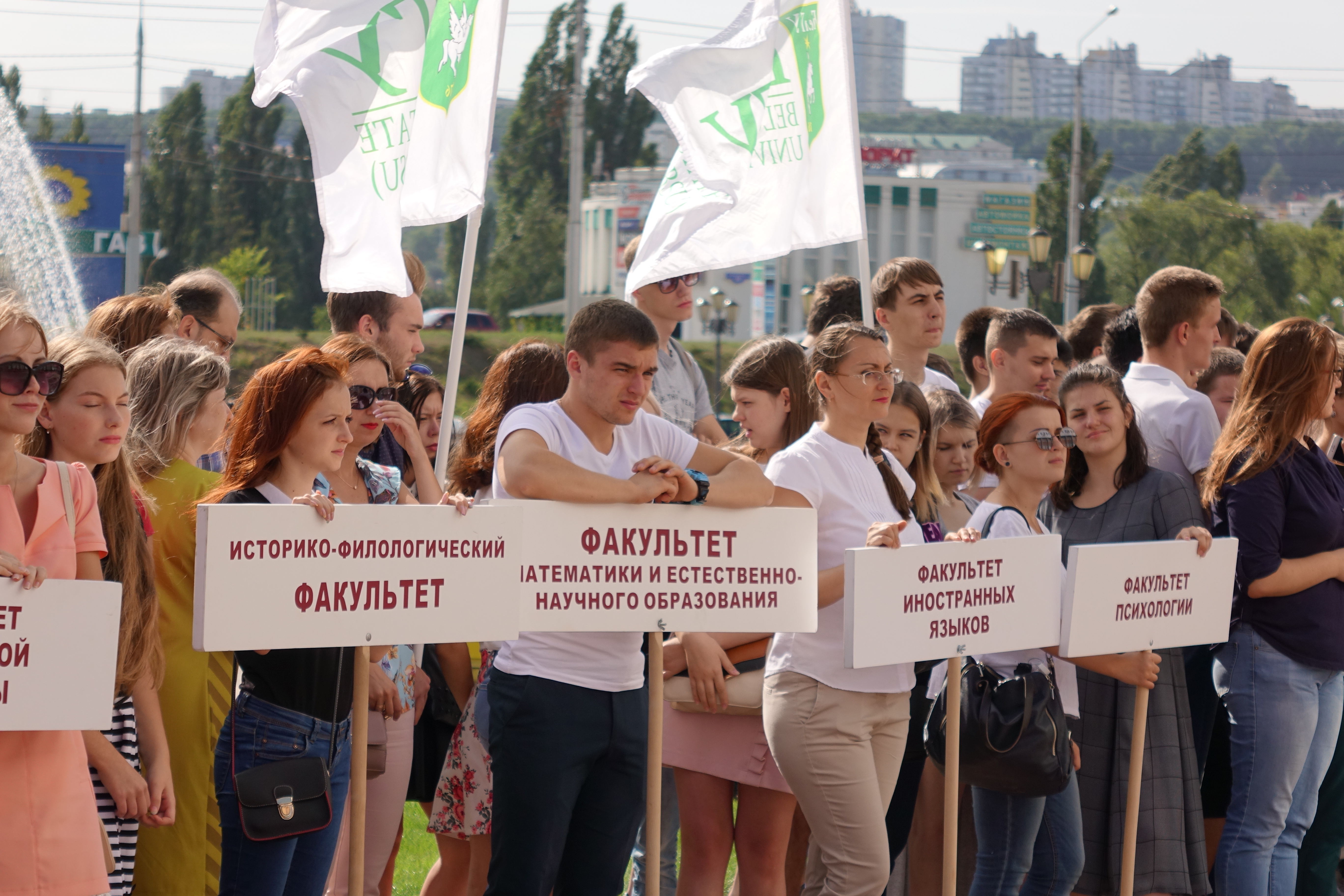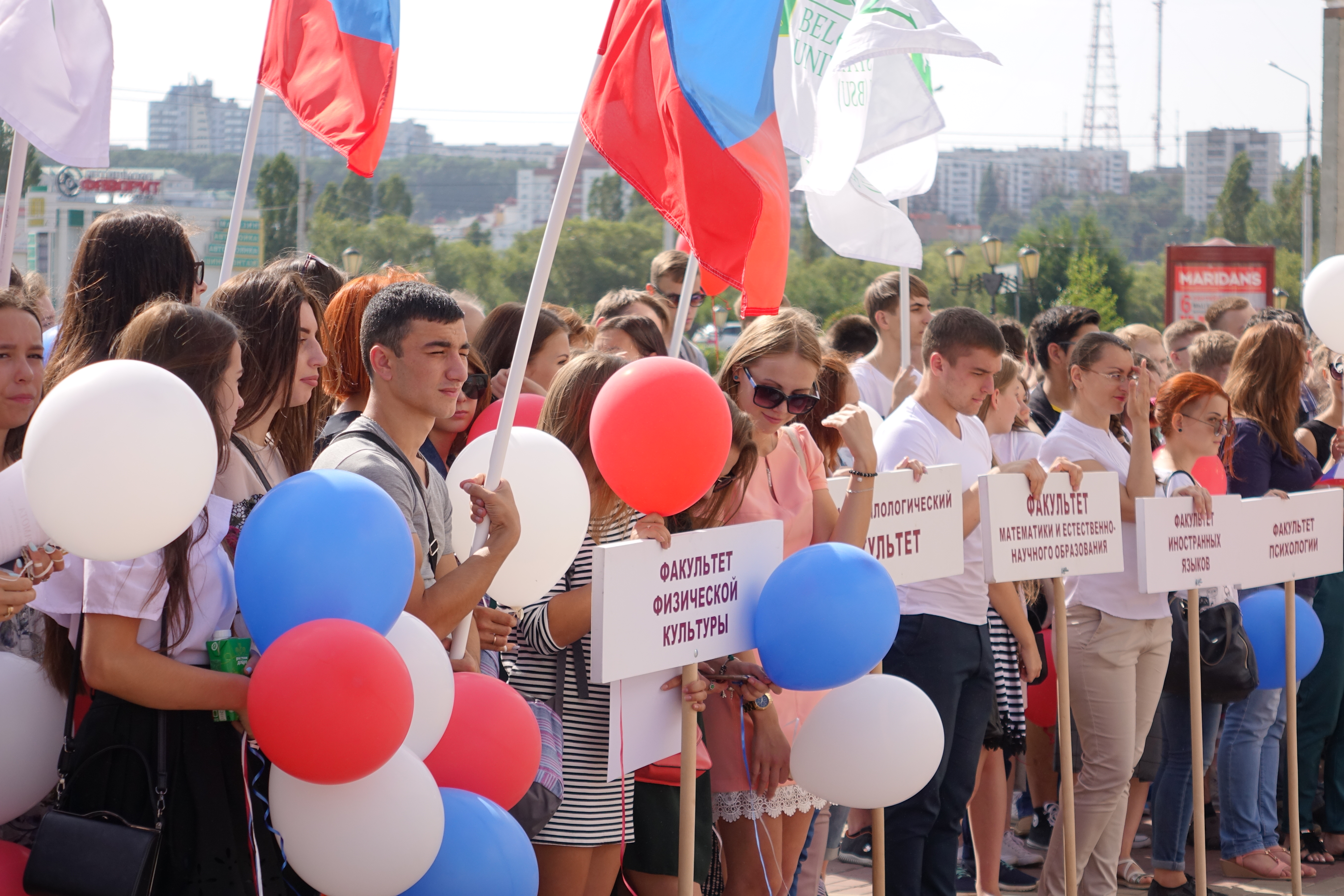 Для торжественного поднятия Государственного флага Российской Федерации был приглашен проректор по учебной работе и информатизации, кандидат технических наук, профессор Александр Маматов. Флаг Белгородской области было поручено поднять Валерии Недосековой. А флаг НИУ «БелГУ» поднял студент 1-го курса, призёр всероссийской олимпиады школьников по истории «Ломоносов» Алексей Зубков. Под гимн Российской Федерации три флага взмыли в небо, а вслед за этим, по сложившейся традиции, были запущены воздушные шары красного, голубого и белого цветов.