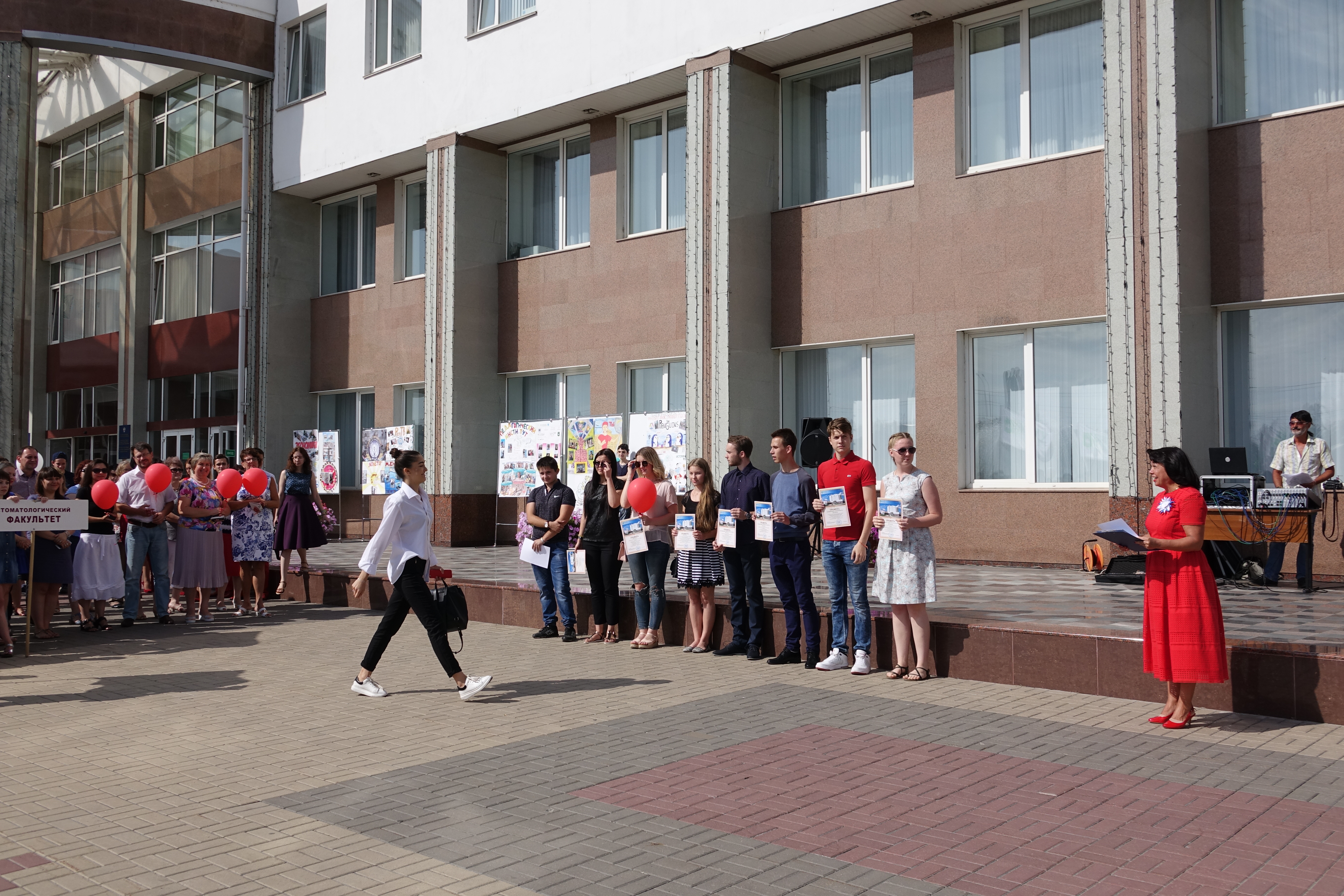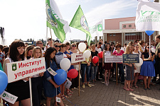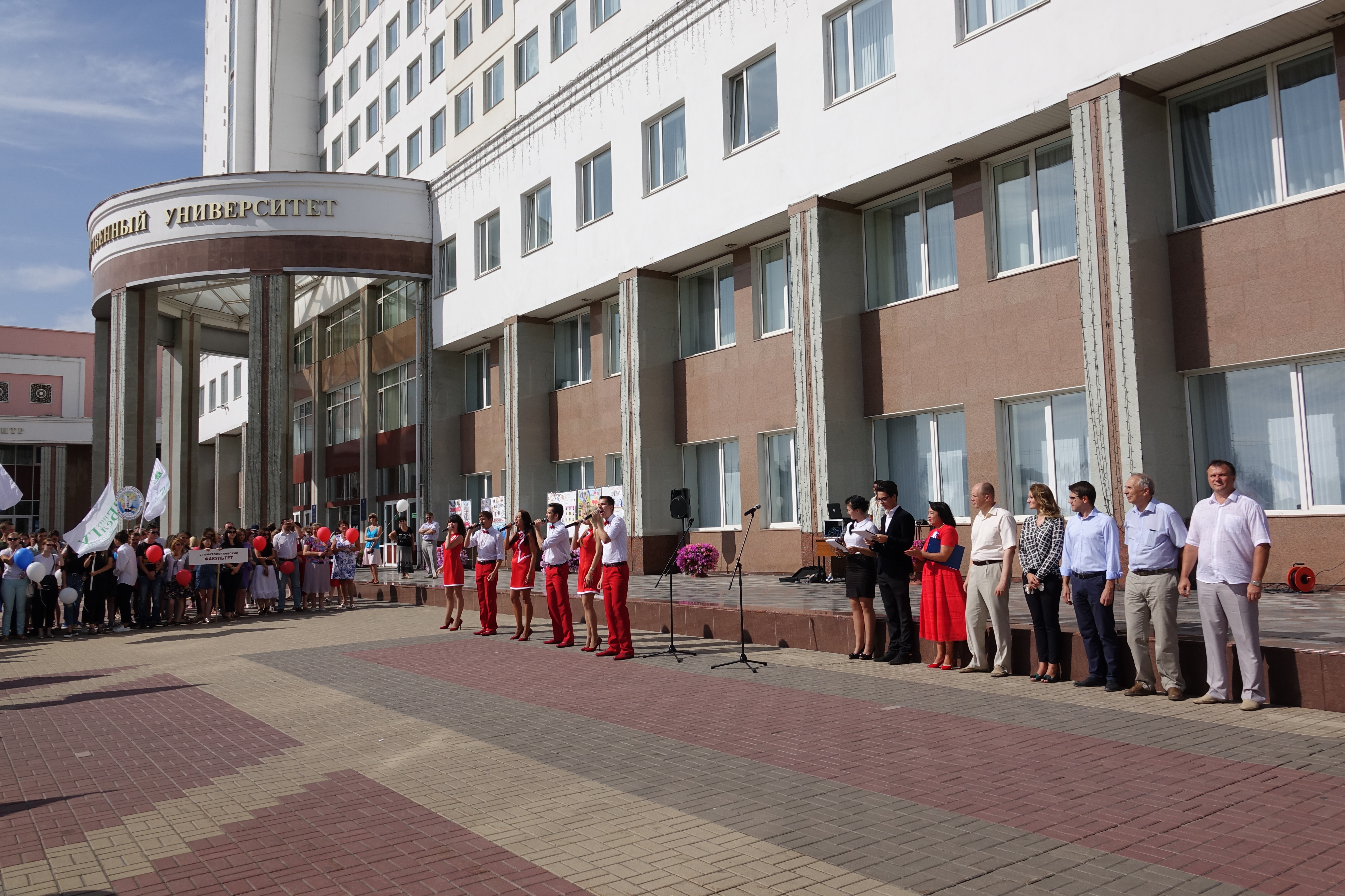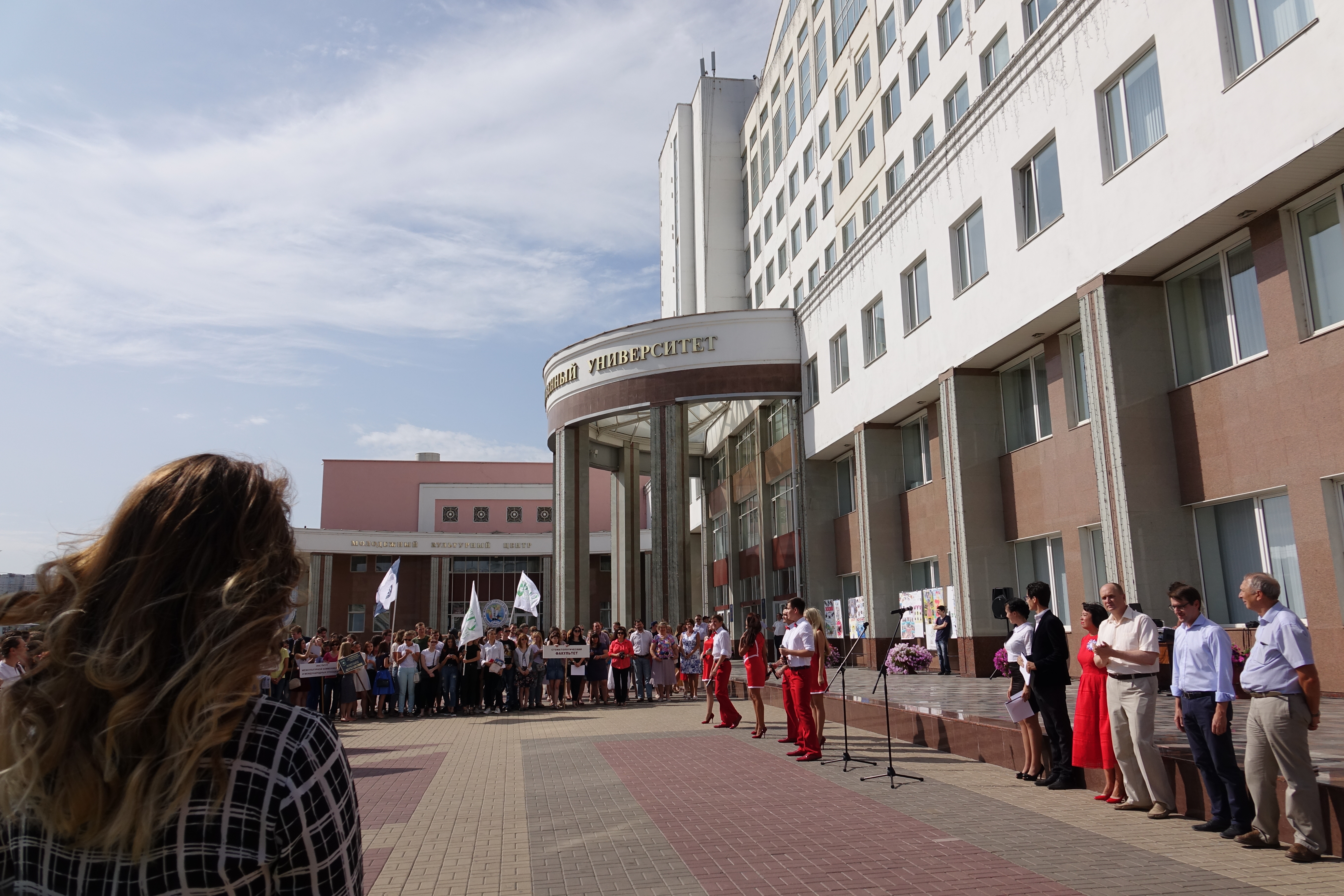 Для торжественного поднятия Государственного флага Российской Федерации был приглашен проректор по учебной работе и информатизации, кандидат технических наук, профессор Александр Маматов. Флаг Белгородской области было поручено поднять Валерии Недосековой. А флаг НИУ «БелГУ» поднял студент 1-го курса, призёр всероссийской олимпиады школьников по истории «Ломоносов» Алексей Зубков. Под гимн Российской Федерации три флага взмыли в небо, а вслед за этим, по сложившейся традиции, были запущены воздушные шары красного, голубого и белого цветов.