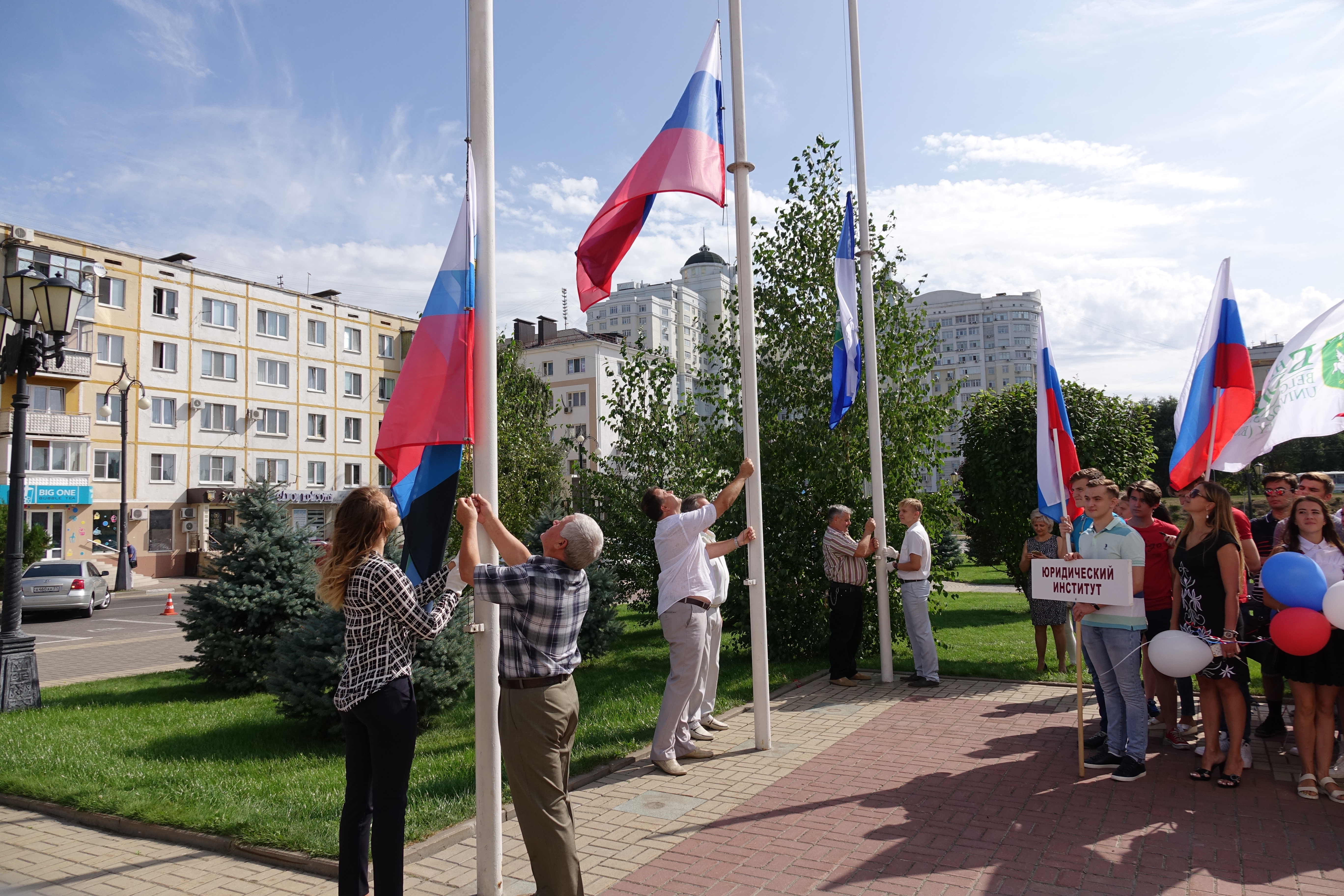 Торжественная церемония поднятия государственного флага Российской Федерации на университетской площади НИУ «БелГУ» состоялась 22 августа, в День Государственного флага Российской Федерации. Студенты, преподаватели и сотрудники университета отмечают эту праздничную дату ежегодно.