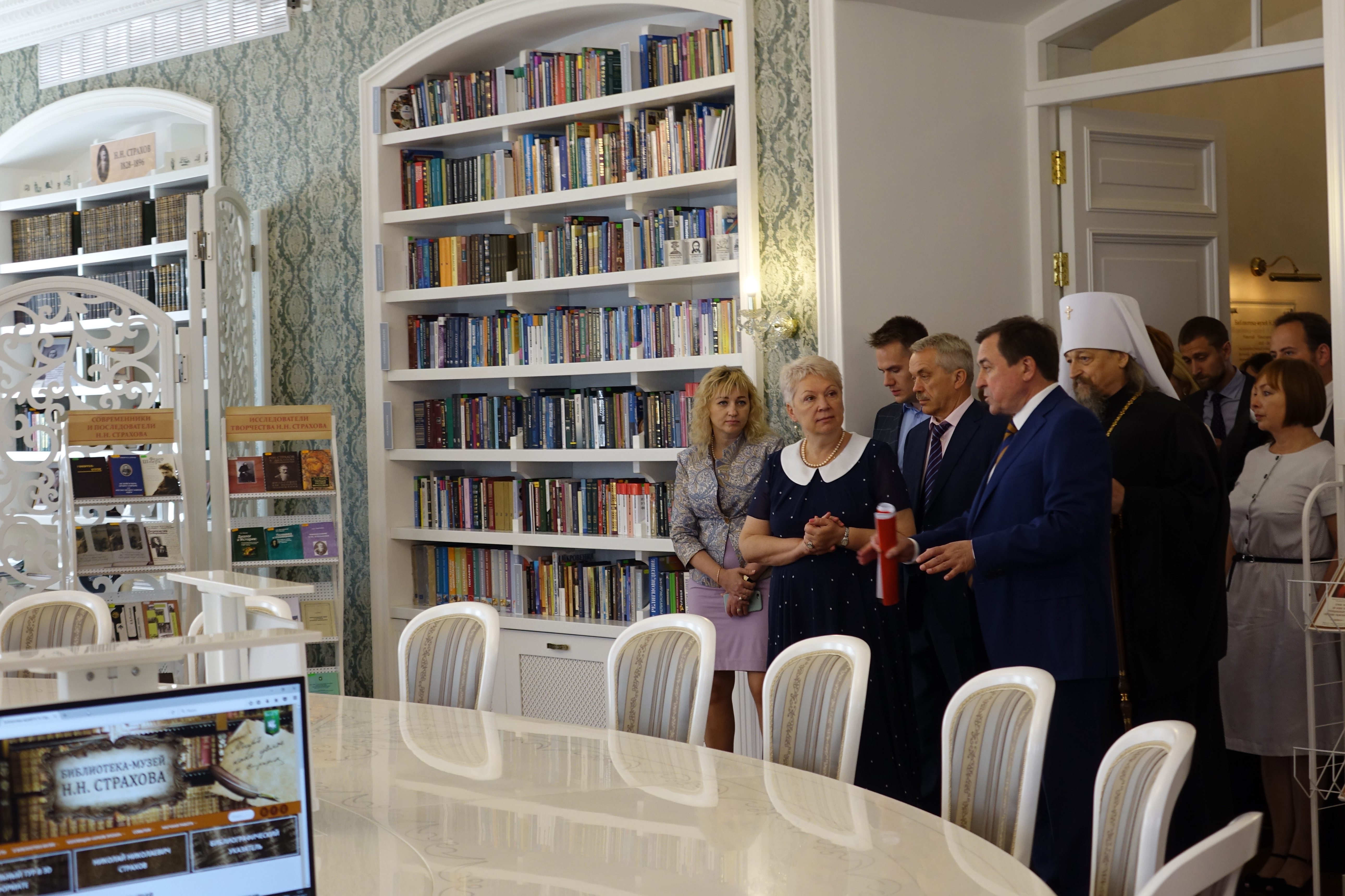 Побывали гости университета и на площадке НИУ «БелГУ», где расположен социально-теологический факультет. Здесь гостей университета встречал митрополит Белгородский и Старооскольский Иоанн. Он напомнил всем присутствующим, что шестнадцать лет назад в Белгороде первым в России открылся на базе университета социально-теологический факультет. И сегодня эта площадка становится центром притяжения философов, мыслителей, теологов. Здесь проходят международные научные форумы, ведётся большая духовно-просветительская работа. Владыка Иоанн представил открывшиеся недавно на этой площадке духовно-просветительский центр имени митрополита Макария (Булгакова), воссозданную спустя сто тридцать лет часовню Святой преподобномученицы Евгении Римской и музей Н.Н. Страхова.