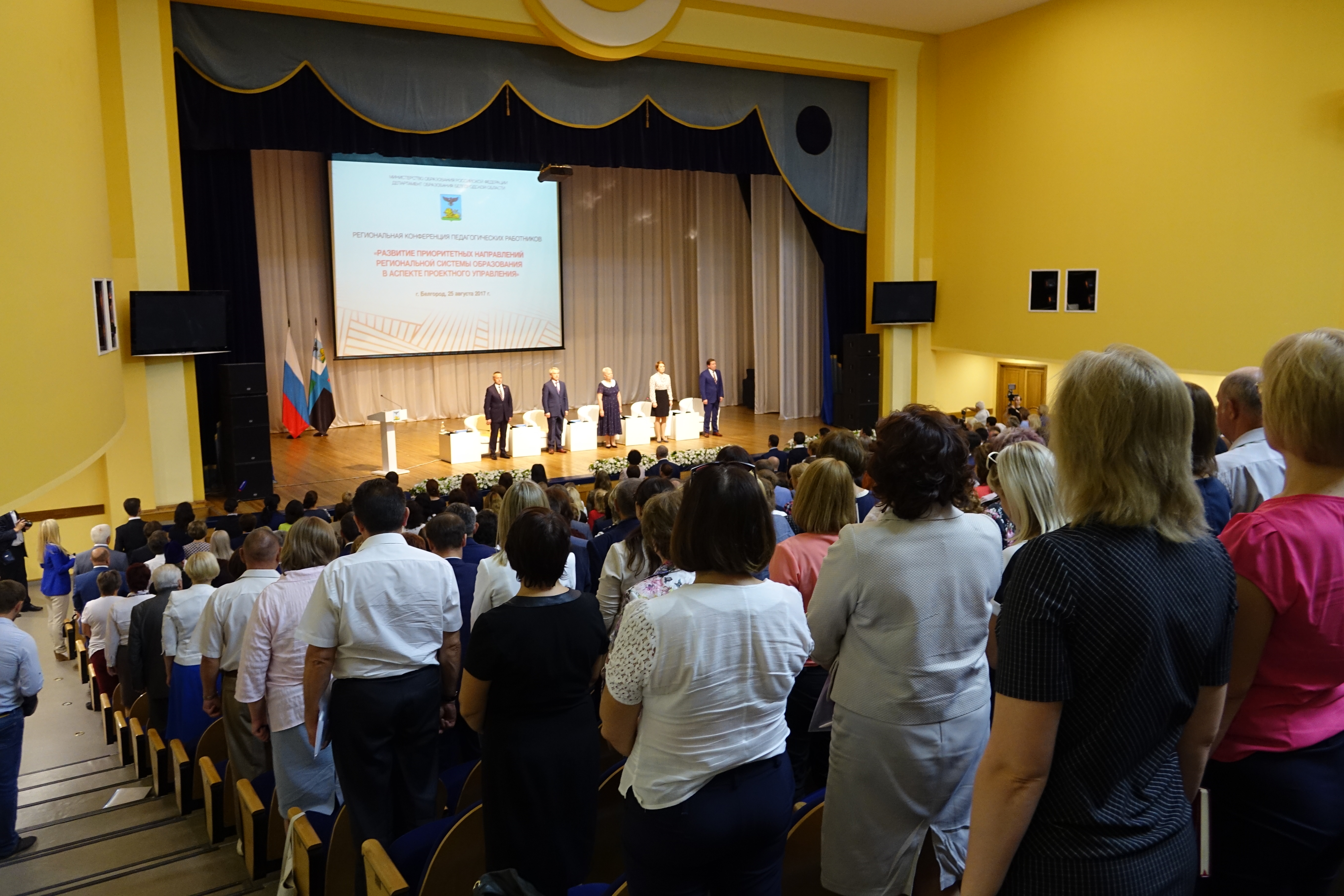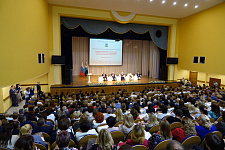 В работе педагогической конференции приняли участие министр образования и науки России Ольга Васильева, губернатор региона Евгений Савченко, председатель областной Думы Василий Потрясаев, заместитель губернатора – начальник департамента образования области Наталия Полуянова.