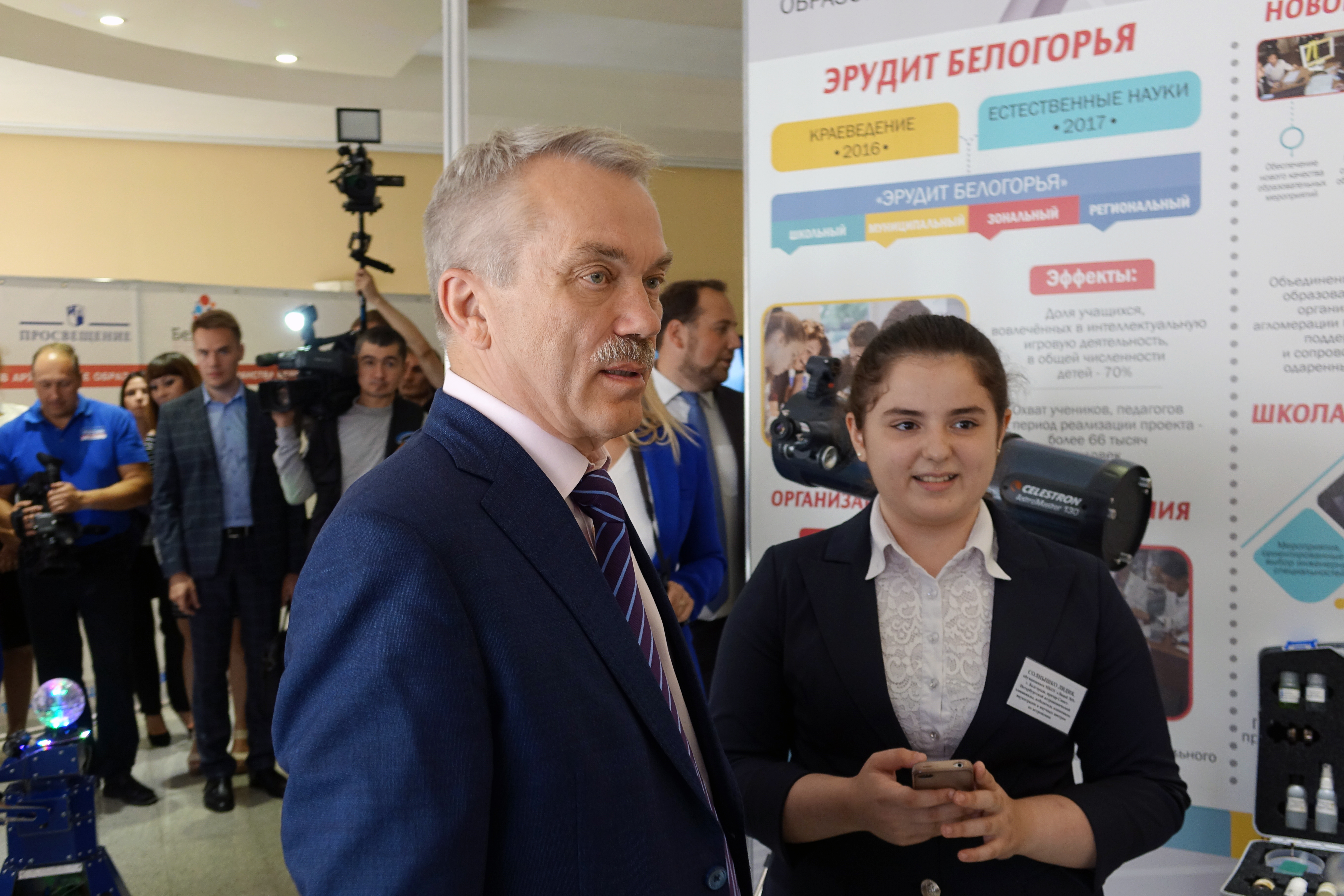 Губернатор поблагодарил Ольгу Васильеву за то, что она приехала познакомиться с опытом региона, обсудить задачи и перспективы образования. Ольга Юрьевна сообщила о работе Министерства по созданию единого образовательного пространства в стране, акцентировала внимание на важности педагогического образования. В частности, на подготовке учителей математики. Она поддержала идею создания на базе НИУ «БелГУ» математического центра, сообщила о необходимости повышения квалификации учителей физики, которые с 1 сентября будут преподавать в школах астрономию.