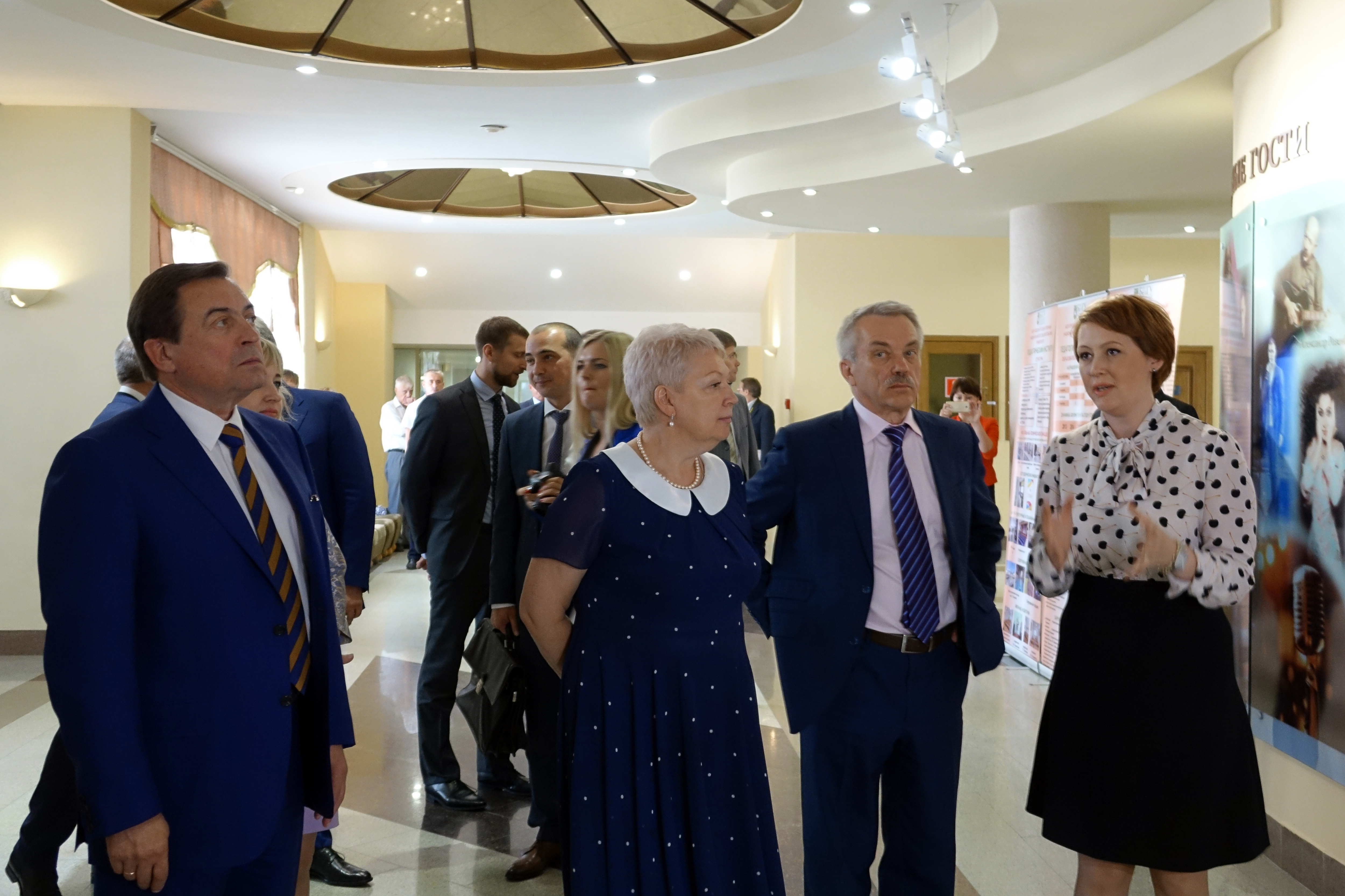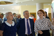 Перед началом конференции гости ознакомились с выставкой приоритетных региональных проектов, которая была развёрнута в холле молодёжного культурного центра.