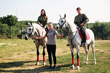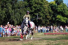 Выступления конников стали кульминационным событием праздничного дня. Зрители не только по достоинству оценили парную манежную езду спортсменок школы Маргариты Бронниковой и Ольги Голуб под музыкальное сопровождение, но также смогли сфотографироваться, пообщаться с лошадью и испытать себя в роли всадника.