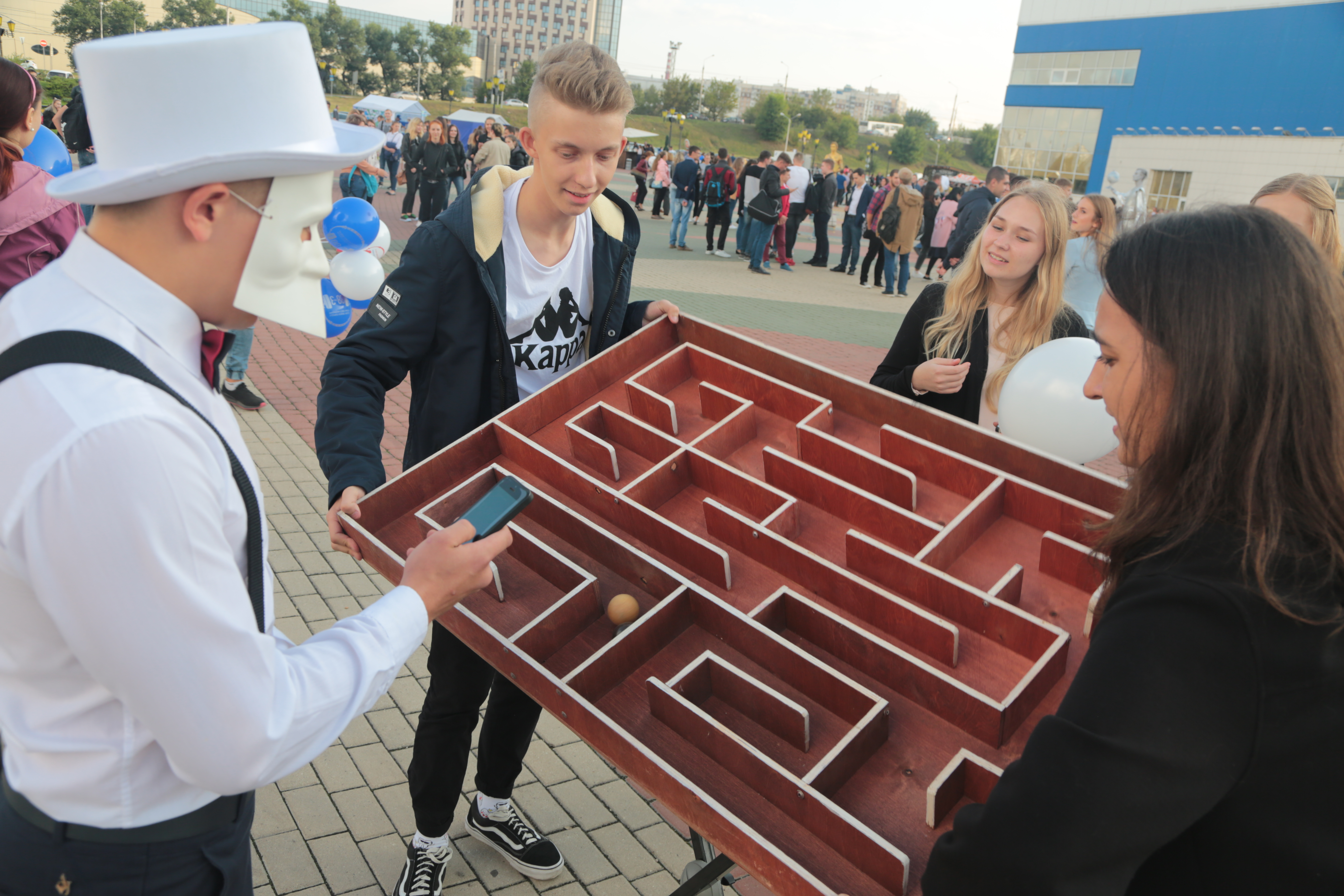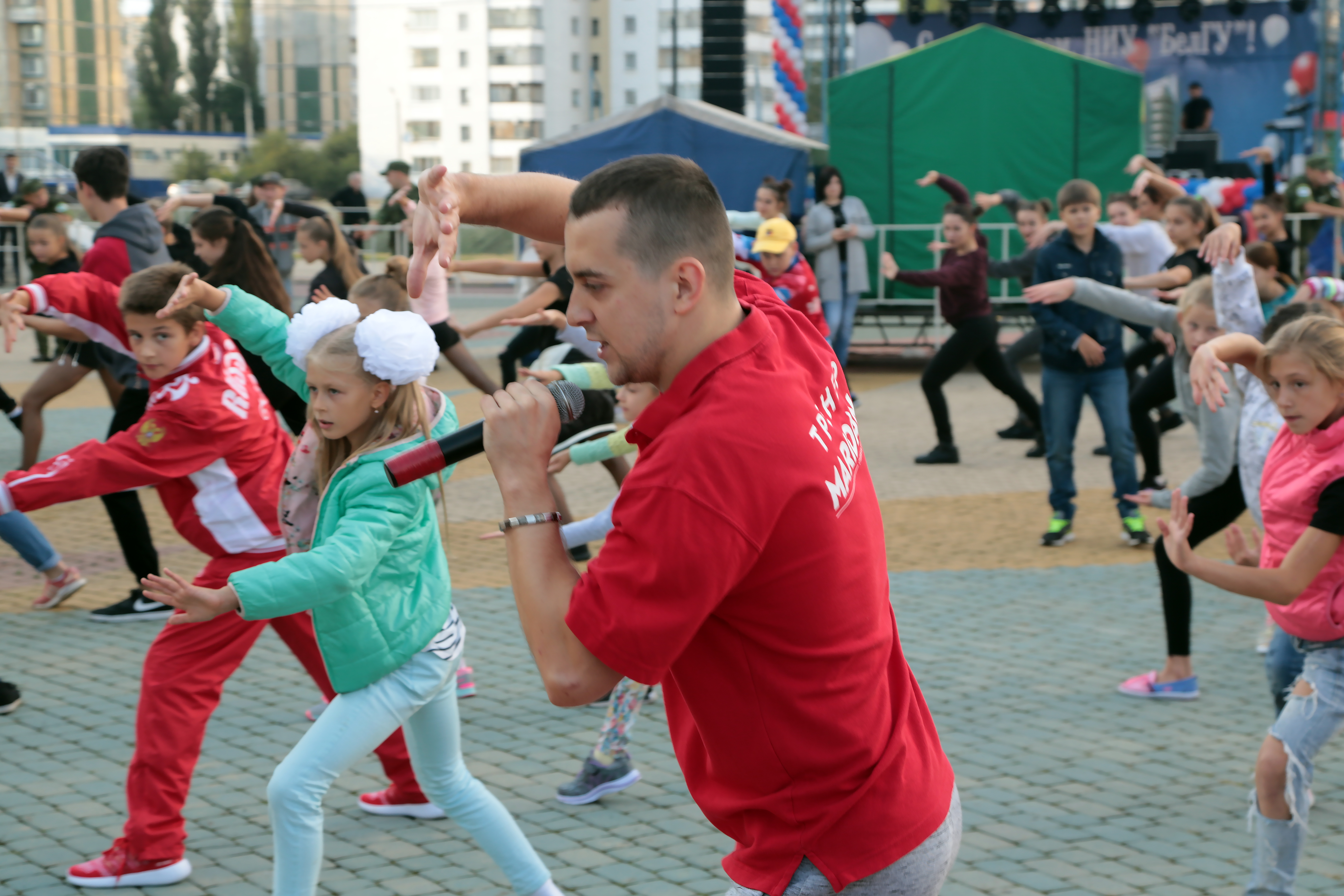 На площади перед учебно-спортивным комплексом НИУ «БелГУ» Светланы Хоркиной работали интерактивные площадки и аниматоры. Студенты, преподаватели и гости праздника увидели живые скульптуры, посетили мастер-классы, попробовали свои силы в спортивных состязаниях и поучаствовали в розыгрыше призов от партнёров университета.
