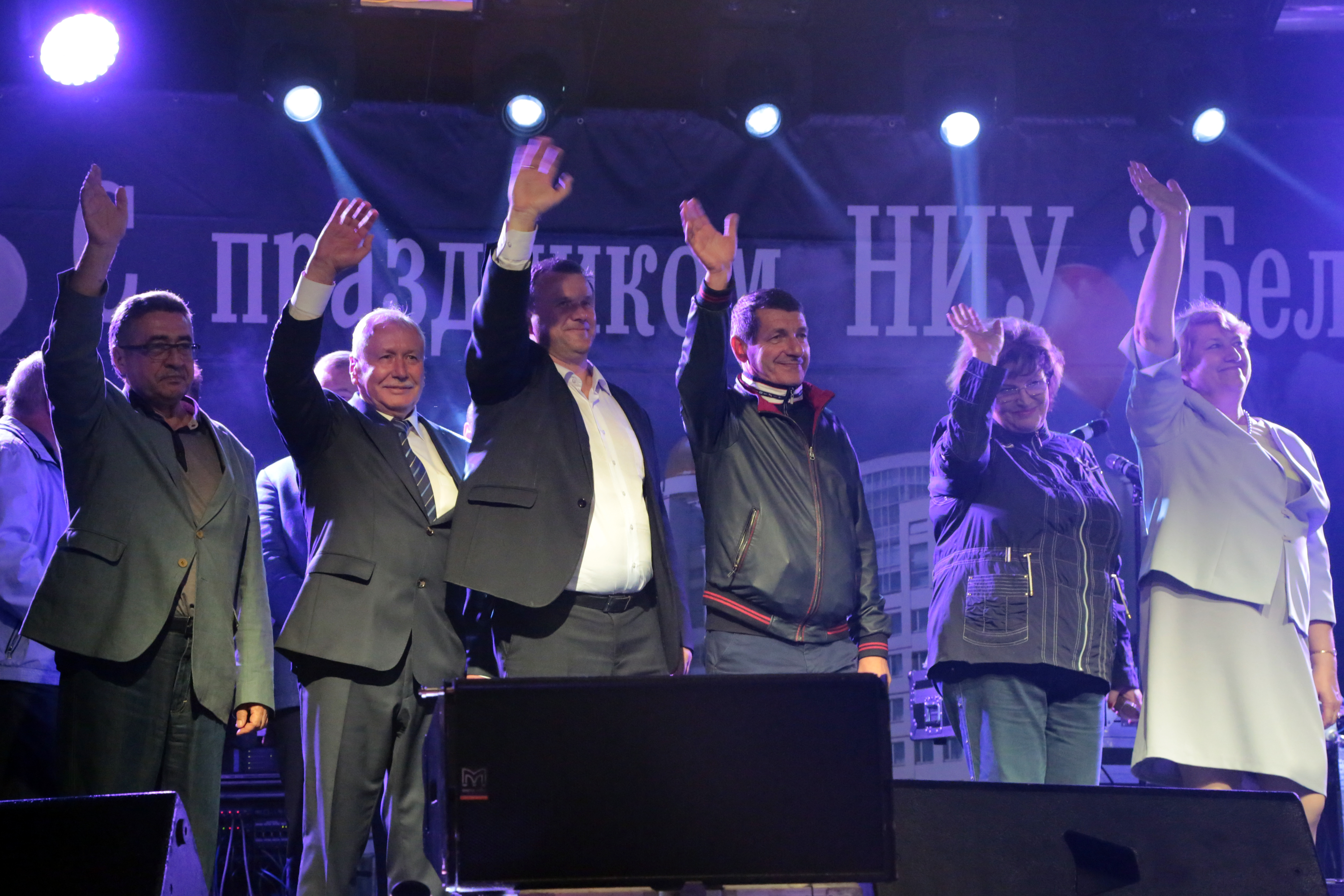 По сложившейся традиции в небе парил аэростат с символикой университета. Гвоздём программы стал концерт музыкальной группы «Дискотека Авария», после которого на сцену поднялись представители ректората НИУ «БелГУ» и почётные гости - член Совета Федерации ФС РФ Иван Кулабухов, депутат Госдумы ФС РФ Валерий Скруг, заместитель председателя областной Думы Юрий Клепиков. С Днём знаний студентов, преподавателей и гостей праздника поздравил ректор Белгородского госуниверситета, профессор Олег Полухин. Олег Николаевич пожелал студентам успехов в учёбе, спортивных и творческих побед.